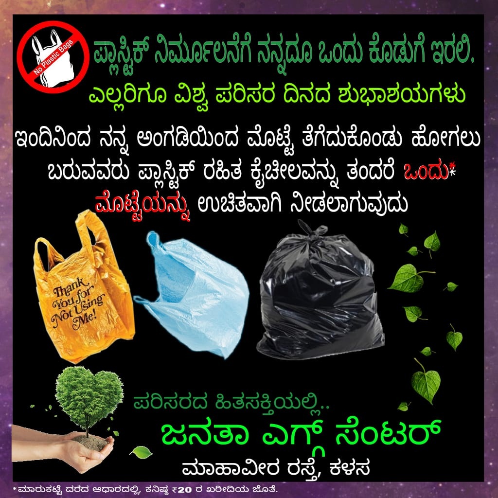 ಕಳಸ, ಜೂ.6: ಪ್ಲಾಸ್ಟಿಕ್ ರಹಿತ ಕೈಚೀಲ ತನ್ನಿ ಒಂದು ಮೊಟ್ಟೆ ಉಚಿತವಾಗಿ ಪಡೆದುಕೊಳ್ಳಿ, ಇದೇನಿದು ಹೊಸ ಜಾಹೀರಾತು ಎಂದುಕೊಳ್ಳಬೇಡಿ. ಕಳಸ ಪಟ್ಟಣದ ಜನತಾ ಸ್ಟೋರ್‌ನ ಮೊಟ್ಟೆ ವ್ಯಾಪಾರಿ ಟಿಟ್ಟು ಥೋಮಸ್ ಪ್ಲಾಸ್ಟಿಕ್ ಚೀಲ ಮುಕ್ತ ಪಟ್ಟಣಕ್ಕಾಗಿ ಇಂತಹ ವಿನೂತನ ಕೊಡುಗೆ ಇಟ್ಟಿದ್ದಾರೆ.