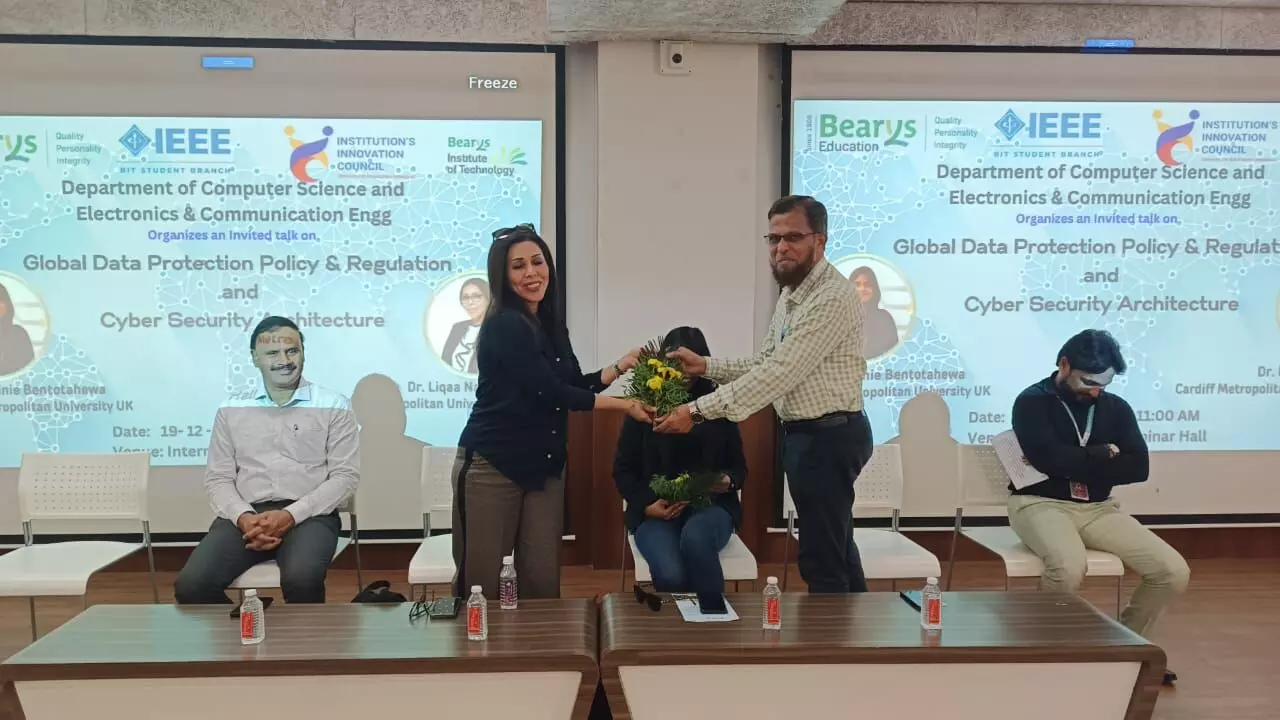 ಮಂಗಳೂರು: ಬ್ಯಾರೀಸ್ ಇನ್ಸ್ಟಿಟ್ಯೂಟ್ ಆಫ್ ಟೆಕ್ನಾಲಜಿ ಕಂಪ್ಯೂಟರ್ ಸೈನ್ಸ್ ಮತ್ತು ಇಂಜಿನಿಯರಿಂಗ್ (CSE) ಮತ್ತು ಎಲೆಕ್ಟ್ರಾನಿಕ್ಸ್ ಮತ್ತು ಕಮ್ಯುನಿಕೇಷನ್ ಇಂಜಿನಿಯರಿಂಗ್ (ECE) ವಿಭಾಗ, IEEE BIT ವಿದ್ಯಾರ್ಥಿ ಶಾಖೆ ಮತ್ತು ಬಿಐಟಿ ಇನ್ನೋವೇಶನ್ ಕೌನ್ಸಿಲ್ ಸಹಯೋಗದೊಂದಿಗೆ “ಜಾಗತಿಕ ಡೇಟಾ ಸಂರಕ್ಷಣಾ ನೀತಿ ಮತ್ತು ನಿಯಂತ್ರಣ” ಮತ್ತು “ಸೈಬರ್ ಸೆಕ್ಯುರಿಟಿ ಆರ್ಕಿಟೆಕ್ಚರ್” (Global Data Protection Policy & Regulation” and “Cyber Security Architecture) ಎಂಬ ವಿಷಯದ ಕುರಿತು ಉಪನ್ಯಾಸ ಕಾರ್ಯಕ್ರಮವು ನಡೆಯಿತು.