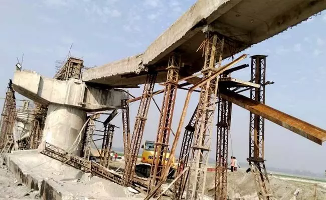 ಧಾರಾಕಾರ ಮಳೆ ಸುರಿದಿರುವುದರಿಂದ ನಿರ್ಮಾಣ ಹಂತದಲ್ಲಿರುವ ಸೇತುವೆಯ ಗರ್ಡರ್ ಶನಿವಾರ ರಾತ್ರಿ ಕುಸಿಯಿತು. ಕಂಬಗಳು ಬಾಗಿದವು. ಇದುವರೆಗೆ ಯಾವುದೇ ರೀತಿಯ ಪ್ರಾಣ ಹಾನಿ ಉಂಟಾದ ಬಗ್ಗೆ ವರದಿಯಾಗಿಲ್ಲ ಎಂದು ಅಧಿಕಾರಿಗಳು ತಿಳಿಸಿದ್ದಾರೆ.