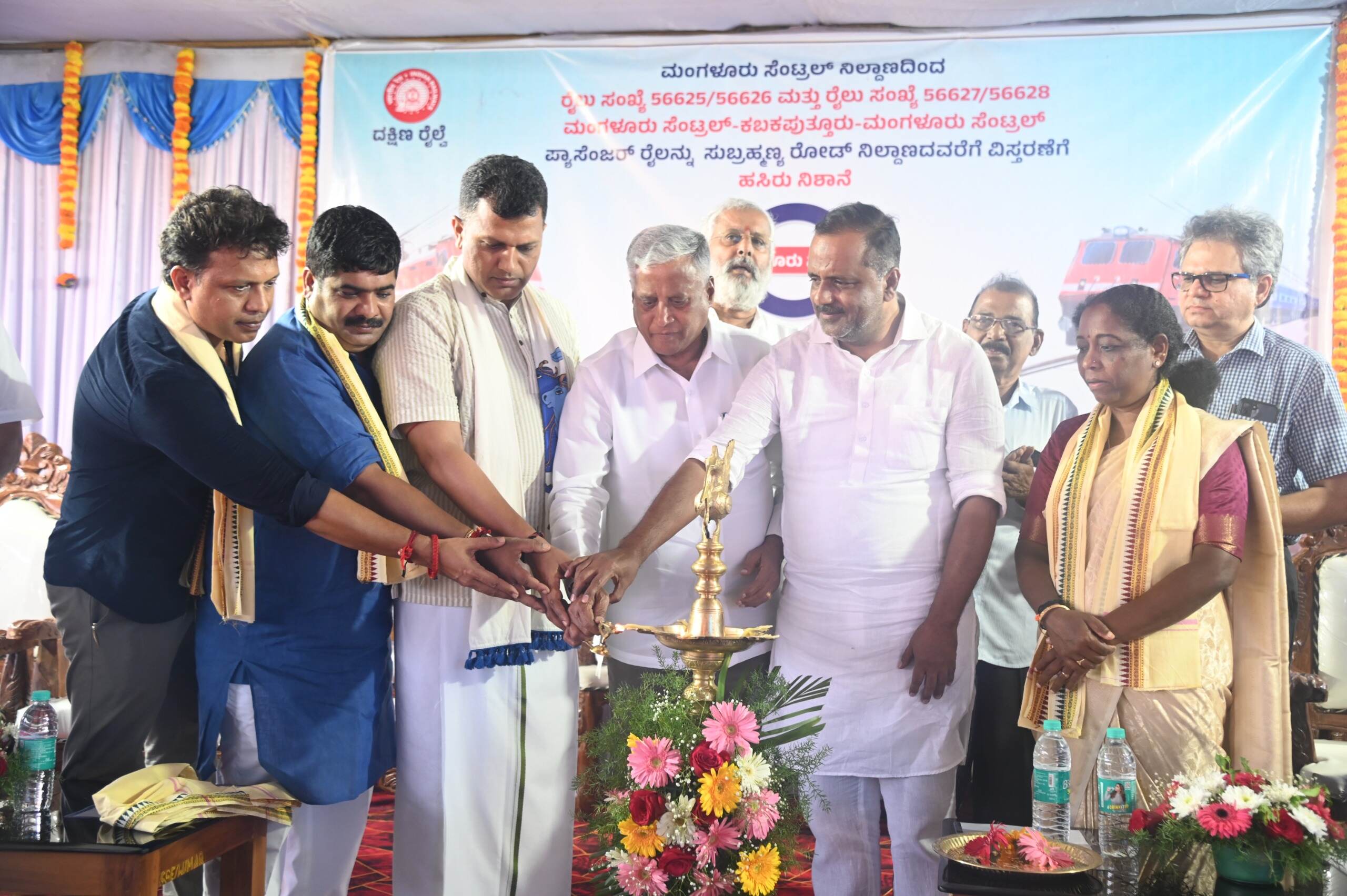 ಮಂಗಳೂರು ಸೆಂಟ್ರಲ್ ರೈಲ್ವೇ ನಿಲ್ದಾಣದಲ್ಲಿ ಶನಿವಾರ ಮಂಗಳೂರು ಸೆಂಟ್ರಲ್- ಕಬಕ ಪುತ್ತೂರು- ಮಂಗಳೂರು ಸೆಂಟ್ರಲ್ ಪ್ಯಾಸೆಂಜರ್ ರೈಲಿನ ಸುಬ್ರಹ್ಮಣ್ಯ ರೋಡ್ ನಿಲ್ದಾಣದವರೆಗಿನ ವಿಸ್ತರಣೆಗೆ ಹಸಿರು ನಿಶಾನೆ ನೀಡಿ ಅವರು ಮಾತನಾಡಿದರು.