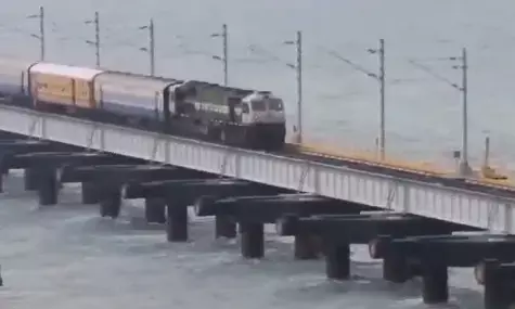 ರಾಮೇಶ್ವರಂ: ಲಂಬವಾಗಿ ತೆರೆಯುವ ನೂತನ ಪಂಬನ್ ಸೇತುವೆ ಮೇಲಿನ ಪರಿಕ್ಷಾರ್ಥ ರೈಲಿನ ಸಂಚಾರ ಯಶಸ್ವಿ