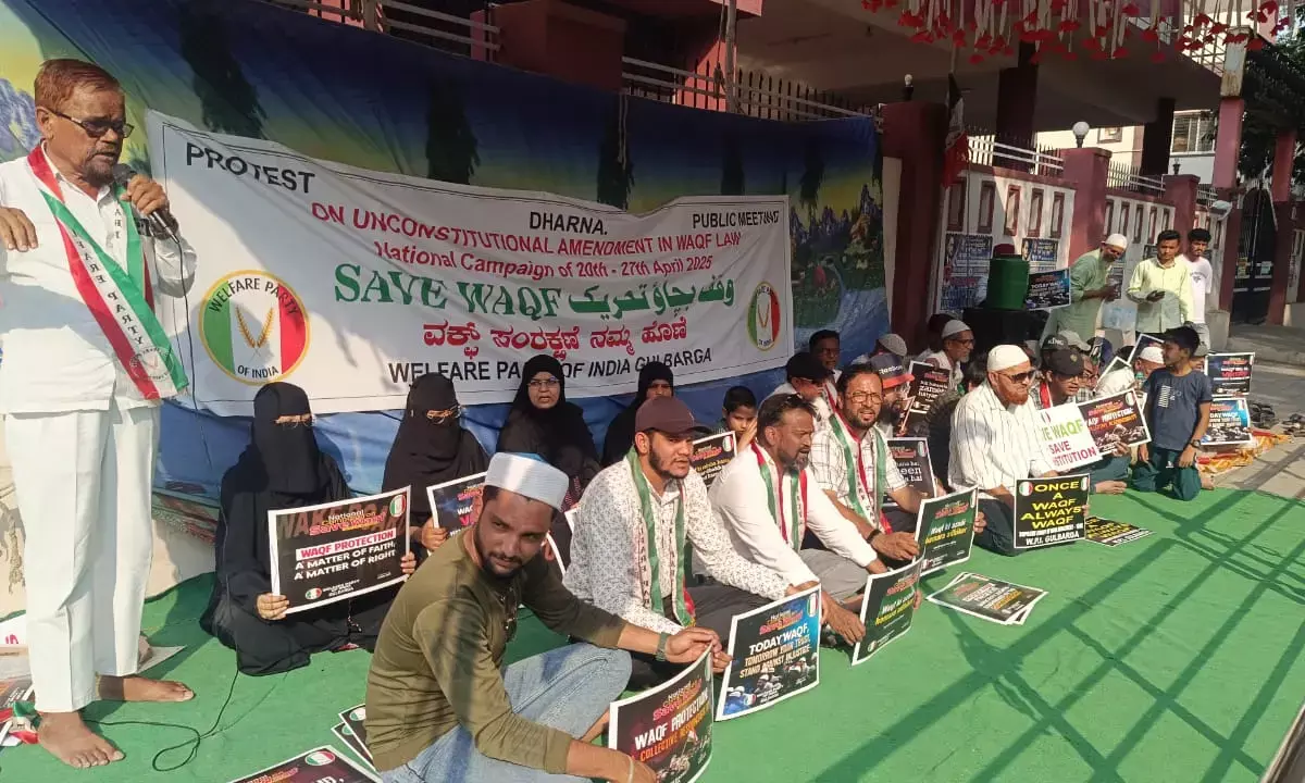 ಕಲಬುರಗಿ : ಕೇಂದ್ರ ಸರಕಾರ ಜಾರಿಗೆ ತಂದಿರುವ ನೂತನ ವಕ್ಫ್ ಕಾಯಿದೆಯನ್ನು ವಿರೋಧಿಸಿ ವೆಲ್ಫೇರ್ ಪಾರ್ಟಿ ಆಫ್ ಇಂಡಿಯಾ ಜಿಲ್ಲಾ ಘಟಕ ಕಾರ್ಯಕರ್ತರು ಜಿಲ್ಲಾಧಿಕಾರಿ ಕಚೇರಿ ಎದುರು ಪ್ರತಿಭಟನೆ ನಡೆಸಿದರು.