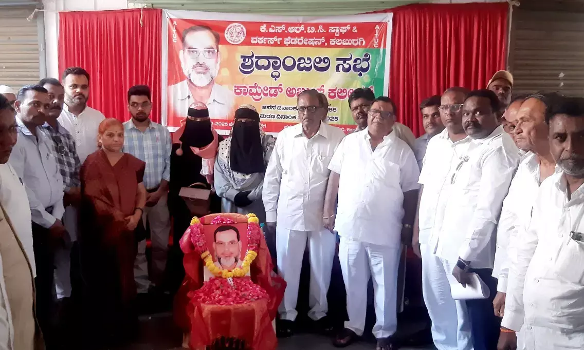 ನಗರದ ಜೇವರ್ಗಿ ಕ್ರಾಸ್ನಲ್ಲಿರುವ ಎಐಟಿಯುಸಿ ಕಚೇರಿಯಲ್ಲಿ ಎಐಟಿಯುಸಿ ಜಿಲ್ಲಾ ಸಮಿತಿ ಹಾಗೂ ಕೆಎಸ್ಆರ್ಟಿಸಿ ಸ್ಟಾಫ್ & ವರ್ಕರ್ಸ್ ಫೆಡರೇಷನ್ ಇತ್ತೇಚಿಗೆ ನಿಧನ ಹೊಂದಿರುವ ಕೆಎಸ್ಆರ್ಟಿಸಿ ಸ್ಟಾಫ್ & ವರ್ಕರ್ಸ್ ಯೂನಿಯನ್ ಕಲಬುರಗಿ ವಿಭಾಗ-2ರ ಪ್ರಧಾನ ಕಾರ್ಯದರ್ಶಿ ಕಾಂ. ಅಬ್ದುಲ್ ಕಲೀಂ ರವರ ಶ್ರದ್ಧಾಂಜಲಿ ಕಾರ್ಯಕ್ರಮದಲ್ಲಿ ಮಾತನಾಡಿದ ಅವರು, ಕಾಂ.ಅಬ್ದುಲ್ ಕಲೀಂ ರವರು ಜೀವಮಾನ ಪೂರ್ತಿ ಜಾತ್ಯತೀತವಾಗಿ ಬದುಕು ನಡೆಸಿದವರು. ಅವರೊಬ್ಬ ಆದರ್ಶ ಮತ್ತು ತತ್ವ ನಿಷ್ಠೆ ಹಾಗೂ ನಿಷ್ಠುರ ವ್ಯಕ್ತಿತ್ವ ಉಳವರಾಗಿದ್ದರು. ಅವರ ಅಗಲಿಕೆಯಿಂದ ಒಬ್ಬ ಪ್ರಾಮಾಣಿಕ ಹಾಗೂ ನಿಷ್ಠಾವಂತ ಹೋರಾಟಗಾರನನ್ನು ಕಳೆದುಕೊಂಡಿದ್ದೇವೆ. ಅವರ ತತ್ವ ಸಿದ್ಧಾಂತಗಳು ಇಂದಿನ ಹೋರಾಟಗಾರರಿಗೆ ಅವಶ್ಯಕತೆ ಇದೆ. ಅವರ ವಿಚಾರಗಳೊಂದಿಗೆ ಹೋರಾಟಗಳನ್ನು ಮುಂದುವರೆಸೋಣ ಎಂದರು.