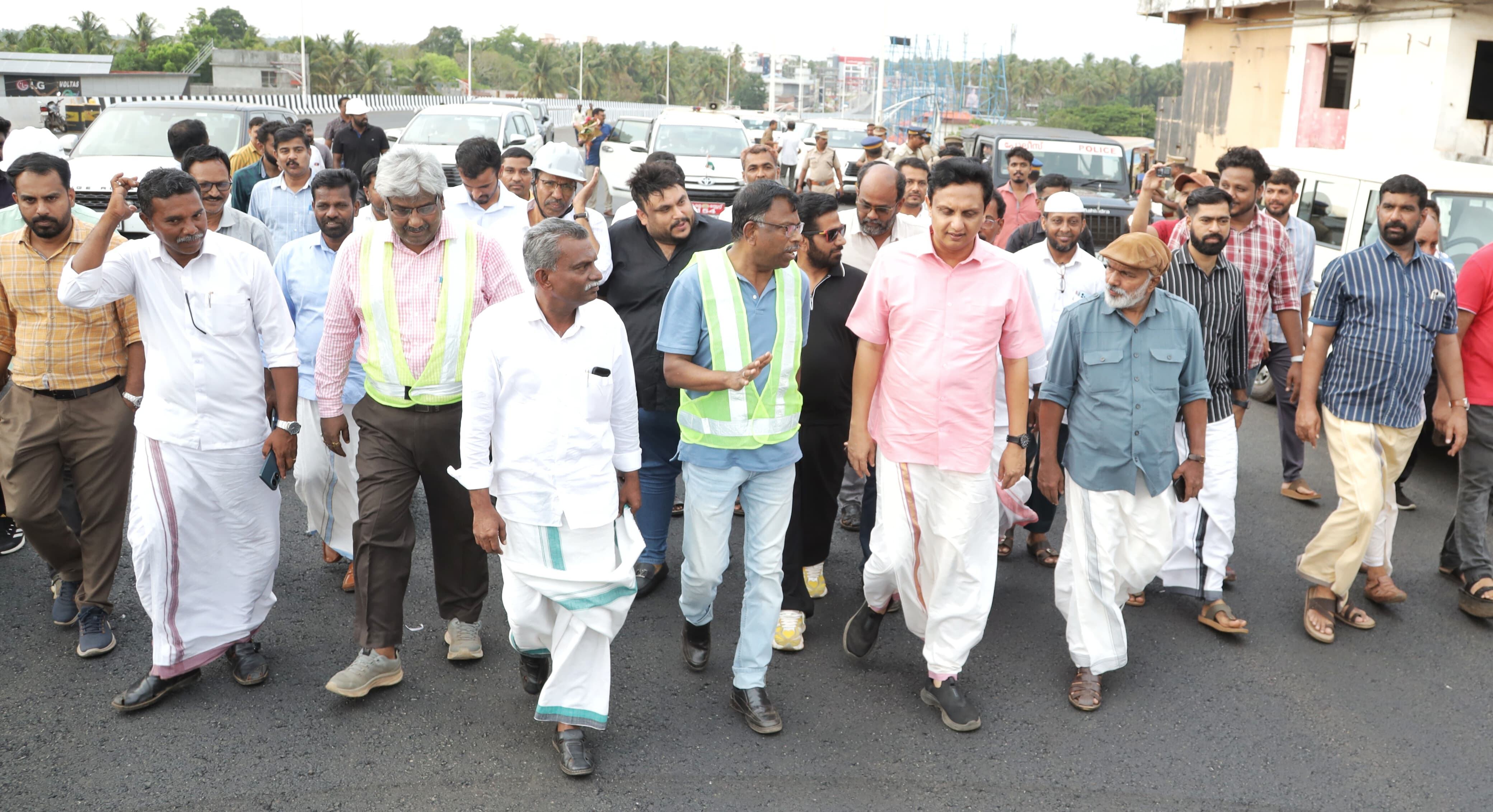 ಮೊದಲ ಹಂತದಲ್ಲಿ 27 ಮೀಟರ್ ಉದ್ದದ ದಕ್ಷಿಣ ಭಾರತದಲ್ಲೇ ಪ್ರಥಮ ಬಾಕ್ಸ್ ಗರ್ಡರ್ ಮಾದರಿಯಲ್ಲಿ ನಿರ್ಮಿಸಿರುವ ಮೇಲ್ಸೇತುವೆ ಮೂಲಕ ಸಂಚರಿಸಿ ಪರಿಶೀಲನೆ ನಡೆಸಿದರು.