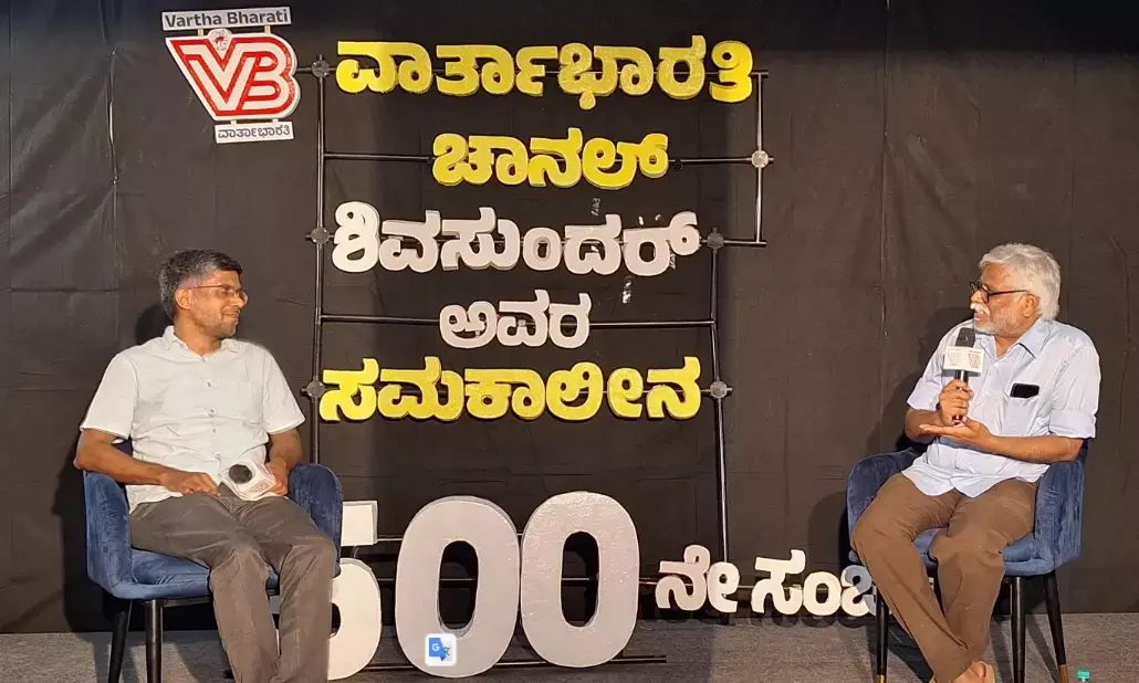 ಮಂಗಳವಾರ ನಗರದ ಕರ್ನಾಟಕ ಚಿತ್ರಕಲಾ ಪರಿಷತ್ನ ದೇವರಾಜು ಅರಸು ಸಭಾಂಗಣದಲ್ಲಿ ʼವಾರ್ತಾಭಾರತಿʼ ಚಾನಲ್ ಹಮ್ಮಿಕೊಂಡಿದ್ದ ವೀಕ್ಷಕರ ಉಪಸ್ಥಿತಿಯಲ್ಲಿ ಶಿವಸುಂದರ್ ಅವರ ಸಮಕಾಲೀನ ವಿಶ್ಲೇಷಣಾ ಕಾರ್ಯಕ್ರಮದ 500ನೇ ಸಂಚಿಕೆಯ ನೇರ ಪ್ರಸಾರ ಹಾಗೂ ಸಂವಾದ ಕಾರ್ಯಕ್ರಮವನ್ನುದ್ದೇಶಿಸಿ ಅವರು ಮಾತನಾಡಿದರು.