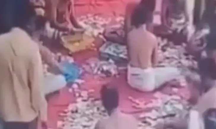ವೈರಲ್ ವಿಡಿಯೋದಲ್ಲಿ ದೇವಸ್ಥಾನದ ಹುಂಡಿಯ ಕಾಣಿಕೆ ಹಣವನ್ನು ಚಾಪೆ ಮೇಲೆ ರಾಶಿ ರಾಶಿ ಹಾಕಲಾಗಿದೆ. ಇನ್ನೊಂದು ಕಡೆ 500 ರೂ. ನೋಟ್ ಗಳ ಕಂತೆಯನ್ನು ಕ್ರಮವಾಗಿ ಮೇಜಿನ ಮೇಲೆ ಜೋಡಿಸಿಡಲಾಗಿದೆ. ಈ ವೇಳೆ ಕೆಲ ಸಿಬ್ಬಂದಿಗಳು 500ರೂ, ನೋಟುಗಳು ಕಂತೆಯನ್ನು ಕಳ್ಳತನ ಮಾಡುವುದು, ಹಣವನ್ನು ಜೇಬಿನಲ್ಲಿರಿಸಿಕೊಂಡು ಹೋಗುವುದು ವಿಡಿಯೋದಲ್ಲಿ ಸೆರೆಯಾಗಿದೆ.