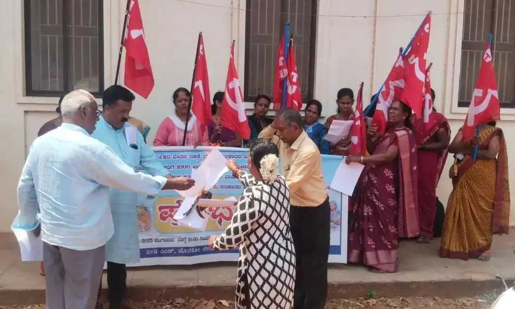 ಉಡುಪಿ: ಬೀಡಿ ಕಾರ್ಮಿಕರ ವೇತನ, ತುಟ್ಟಿಭತ್ಯೆ ಕಡಿತಕ್ಕೆ ಪ್ರತಿಭಟನೆ