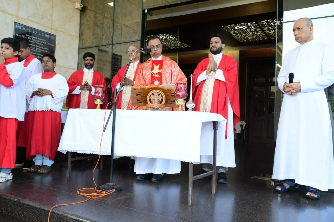 ಮಂಗಳೂರು: ಮಿಲಾಗ್ರಿಸ್ ದೇವಾಲಯದಲ್ಲಿ ಗರಿಗಳ ಭಾನುವಾರವನ್ನು ಆಚರಿಸಲಾಯಿತು. ವಂದನೀಯ ಧರ್ಮ ಗುರು ಮೈಕಲ್ ಸಾಂತುಮಾಯೆರ್ ಗರಿಗಳನ್ನು ಆಶೀರ್ವದಿಸಿ ಬಲಿ ಪೂಜೆಯನ್ನು ಅರ್ಪಿಸಿದರು.