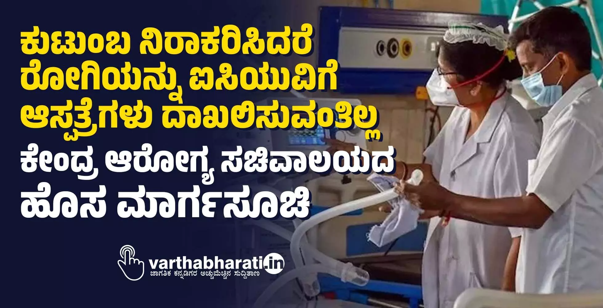 ಕುಟುಂಬ ನಿರಾಕರಿಸಿದರೆ ರೋಗಿಯನ್ನು ಐಸಿಯುವಿಗೆ ಆಸ್ಪತ್ರೆಗಳು ದಾಖಲಿಸುವಂತಿಲ್ಲ: ಕೇಂದ್ರ ಆರೋಗ್ಯ ಸಚಿವಾಲಯದ ಹೊಸ ಮಾರ್ಗಸೂಚಿ