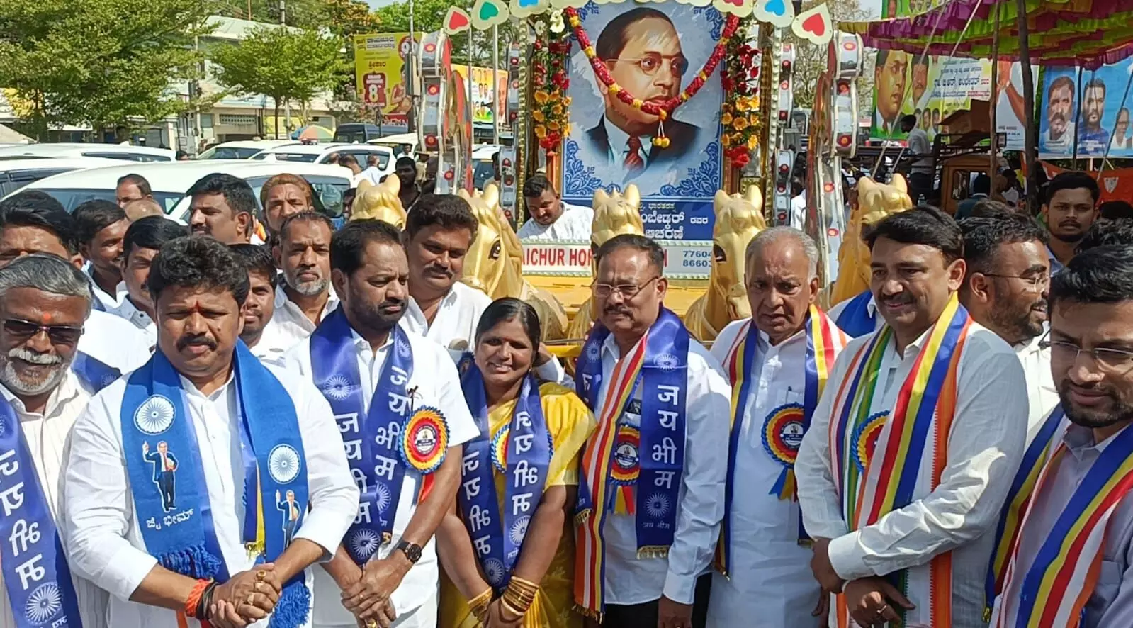 ಇದಕ್ಕೂ ಮುಂಚೆ ನಗರದ ಡಾ.ಬಿ.ಆರ್.ಅಂಬೇಡ್ಕರ್ ಸರ್ಕಲ್ ಹತ್ತಿರವಿರುವ ಡಾ.ಬಿ.ಆರ್.ಅಂಬೇಡ್ಕರ್ ಪುತ್ಥಳಿಗೆ ಸಣ್ಣ ನೀರಾವರಿ, ವಿಜ್ಞಾನ ಮತ್ತು ತಂತ್ರಜ್ಞಾನ ಹಾಗೂ ಕೊಡಗು ಜಿಲ್ಲಾ ಉಸ್ತುವಾರಿ ಸಚಿವರಾದ ಎನ್.ಎಸ್.ಭೋಸರಾಜು, ಕರ್ನಾಟಕ ಪರಿಶಿಷ್ಟ ಪಂಗಡಗಳ ಅಭಿವೃದ್ಧಿ ನಿಗಮದ ಅಧ್ಯಕ್ಷರು ಹಾಗೂ ರಾಯಚೂರು ಗ್ರಾಮಾಂತರ ಕ್ಷೇತ್ರದ ಶಾಸಕರಾದ ಬಸನಗೌಡ ದದ್ದಲ್, ರಾಯಚೂರು ನಗರ ಕ್ಷೇತ್ರದ ಶಾಸಕರಾದ ಡಾ.ಶಿವರಾಜ ಎಸ್.ಪಾಟೀಲ್, ವಿಧಾನ ಪರಿಷತ್ ಸದಸ್ಯರಾದ ಎ.ವಸಂತಕುಮಾರ್, ರಾಯಚೂರು ಮಹಾನಗರ ಪಾಲಿಕೆಯ ಅಧ್ಯಕ್ಷರಾದ ನರಸಮ್ಮ ನರಸಿಂಹಲು ಮಾಡಗಿರಿ, ಜಿಲ್ಲಾ ಪೊಲೀಸ್ ವರಿಷ್ಠಾಧಿಕಾರಿ ಎಂ.ಪುಟ್ಟಮಾದಯ್ಯ, ರಾಯಚೂರು ಮಹಾನಗರ ಪಾಲಿಕೆಯ ಆಯುಕ್ತರಾದ ಜುಬಿನ್ ಮೊಹಪಾತ್ರ, ಸಮಾಜ ಕಲ್ಯಾಣ ಇಲಾಖೆ ಉಪ ನಿರ್ದೇಶಕ ಚಿದಾನಂದಪ್ಪ ಸೇರಿದಂತೆ ಇತರೆ ಗಣ್ಯ ವ್ಯಕ್ತಿಗಳಿಂದ ಮಾಲಾರ್ಪಣೆ ಮಾಡಿ ಗೌರವ ಸಲ್ಲಿಸಲಾಯಿತು.