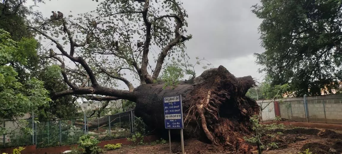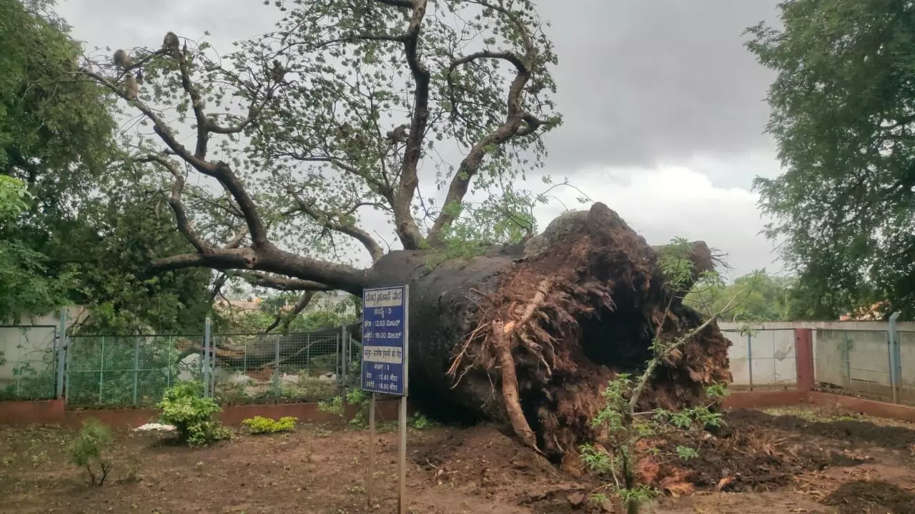 ಹಾವೇರಿ: ಧರೆಗುರುಳಿದ ಸಾವಿರಾರು ವರ್ಷಗಳ ಐತಿಹಾಸಿಕ ದೊಡ್ಡ ಹುಣಸೆ ಮರ