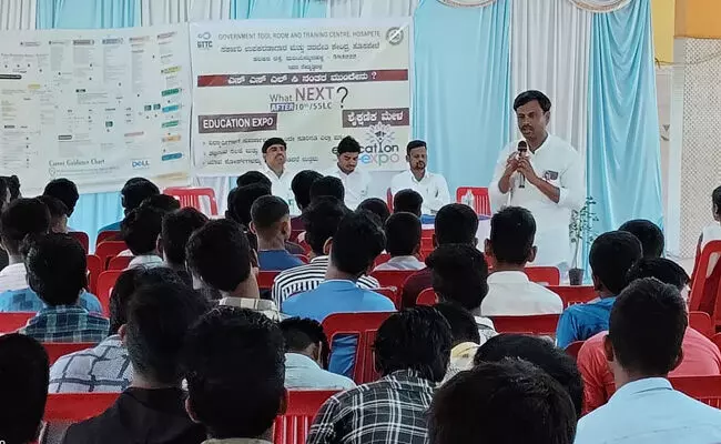 ಹಗರಿಬೊಮ್ಮನಹಳ್ಳಿ ಪಟ್ಟಣದ ವಾಲ್ಮೀಕಿ ಭವನದಲ್ಲಿ ಸರ್ಕಾರಿ ಉಪಕರಣಗಾರ ಮತ್ತು ತರಬೇತಿ ಕೇಂದ್ರದಿಂದ ವಿದ್ಯಾರ್ಥಿಗಳು ಮತ್ತು ಪೋಷಕರಿಗೆ ಏರ್ಪಡಿಸಿದ್ದ ಎಸೆಸೆಲ್ಸಿ ನಂತರ ಮುಂದೇನು ತರಬೇತಿ ಕಾರ್ಯಾಗಾರವನ್ನು ಉದ್ಘಾಟಿಸಿ ಮಾತನಾಡಿದರು.