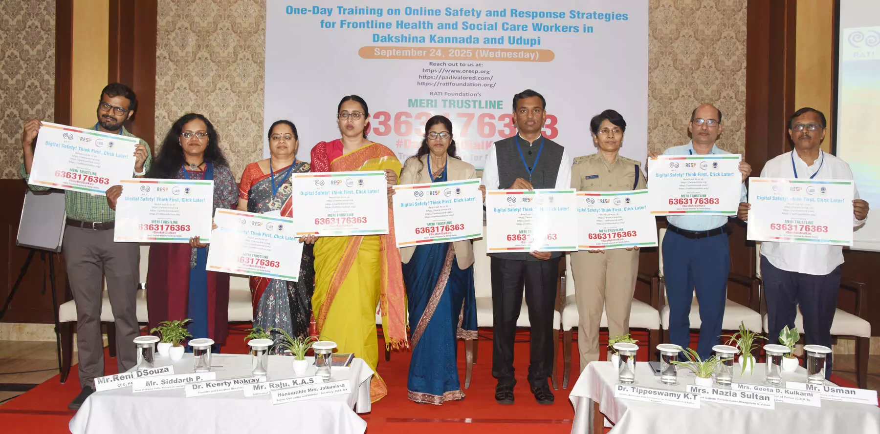 ರತಿ ಫೌಂಡೇಶನ್, ಒಆರ್ಇಎಸ್ಪಿ, ಪಡಿ ಮಂಗಳೂರು ಮತ್ತು ಜಿಲ್ಲಾ ಕಾನೂನು ಸೇವೆಗಳ ಪ್ರಾಧಿಕಾರದ ವತಿಯಿಂದ ನಗರದ ಹೊಟೇಲ್ ಓಶಿಯನ್ ಪರ್ಲ್ನಲ್ಲಿ ಬುಧವಾರ ನಡೆದ ಆನ್ಲೈನ್ ಸುರಕ್ಷತೆ ಮತ್ತು ಪ್ರತಿತಂತ್ರಗಳ ಕುರಿತು ದ.ಕ. ಮತ್ತು ಉಡುಪಿ ಜಿಲ್ಲೆಗಳ ಮುಂಚೂಣಿ ಆರೋಗ್ಯ ಹಾಗೂ ಸಾಮಾಜಿಕ ಆರೈಕೆ ಕಾರ್ಯಕರ್ತರ ತರಬೇತಿ ಕಾರ್ಯಕ್ರಮ ಉದ್ಘಾಟಿಸಿ ಅವರು ಮಾತನಾಡಿದರು.