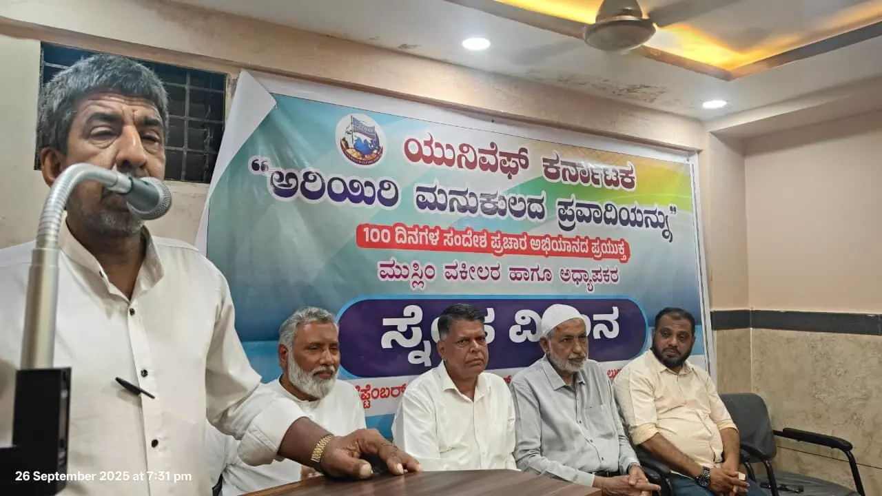 ಮಂಗಳೂರು, ಸೆ.27: ಯುನಿವೆಫ್ ಕರ್ನಾಟಕ ಶೋಷಿತ ಸಮಾಜ ಹಾಗೂ ಮಾನವ ಘನತೆ ಮತ್ತು ಪ್ರವಾದಿ ಮುಹಮ್ಮದ್ (ಸ) ಎಂಬ ಕೇಂದ್ರೀಯ ವಿಷಯದಲ್ಲಿ 100 ದಿನಗಳ ಕಾಲ ಹಮ್ಮಿಕೊಂಡಿರುವ 20ನೇ ವರ್ಷದ ಅರಿಯಿರಿ ಮನುಕುಲದ ಪ್ರವಾದಿಯನ್ನು ಅಭಿಯಾನದ ಪ್ರಯುಕ್ತ ಶಿಕ್ಷಕರ ಮತ್ತು ನ್ಯಾಯವಾದಿಗಳ ಸ್ನೇಹ ಮಿಲನ ಕಾರ್ಯಕ್ರಮವು ಶುಕ್ರವಾರ ನಡೆಯಿತು.