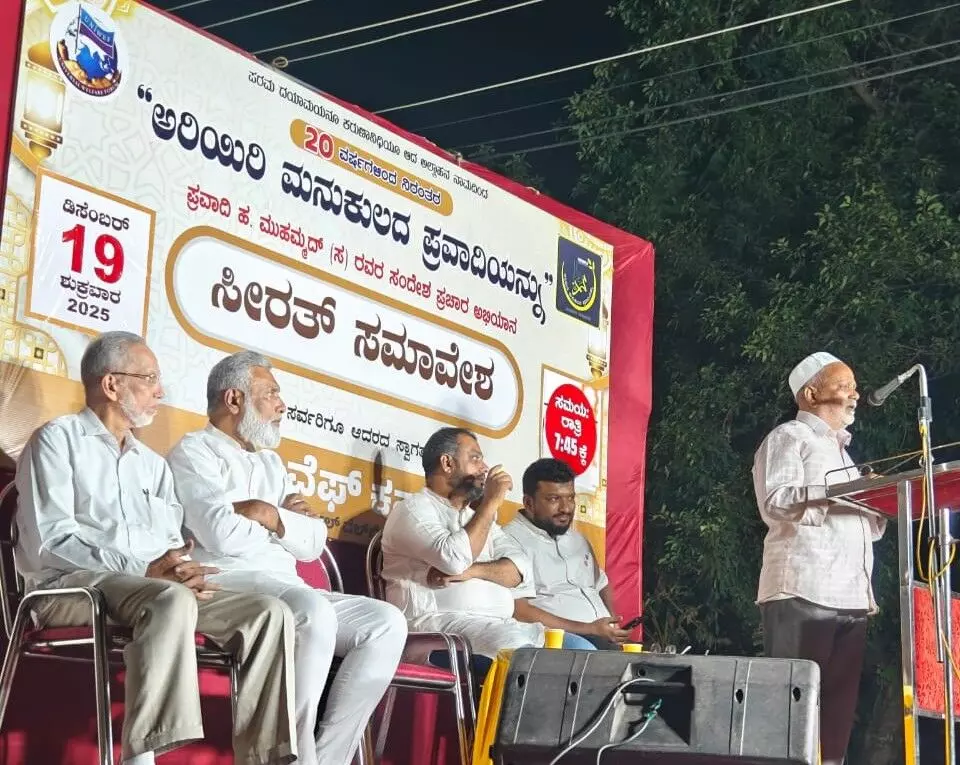 ಮಂಗಳೂರು: ಯುನಿವೆಫ್ ಕರ್ನಾಟಕ 19 ಸೆಪ್ಟೆಂಬರ್ 2025 ರಿಂದ 2 ಜನವರಿ 2026 ರ ವರೆಗೆ “ಶೋಷಿತ ಸಮಾಜ ಹಾಗೂ ಮಾನವ ಘನತೆ ಮತ್ತು ಪ್ರವಾದಿ ಮುಹಮ್ಮದ್ (ಸ)” ಎಂಬ ಕೇಂದ್ರೀಯ ವಿಷಯದಲ್ಲಿ 100 ದಿನಗಳ ಕಾಲ ಹಮ್ಮಿಕೊಂಡಿರುವ 20 ನೇ ವರ್ಷದ “ಅರಿಯಿರಿ ಮನುಕುಲದ ಪ್ರವಾದಿಯನ್ನು” ಅಭಿಯಾನದ ಸೀರತ್ ಸಮಾವೇಶವು ಕುದ್ರೋಳಿಯ A1 ಭಾಗ್ ನಲ್ಲಿ ಜರಗಿತು.