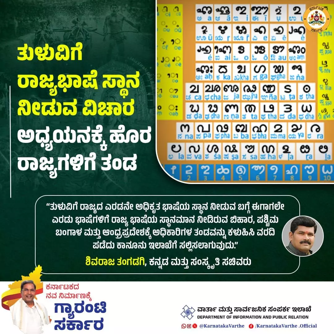 ತುಳುವಿಗೆ 2ನೇ ಅಧಿಕೃತ ಭಾಷೆ ಸ್ಥಾನಮಾನ ಅಧ್ಯಯನಕ್ಕೆ ಹೊರರಾಜ್ಯಗಳಿಗೆ ಅಧಿಕಾರಿಗಳ ತಂಡ: ಸಚಿವ ತಂಗಡಗಿ