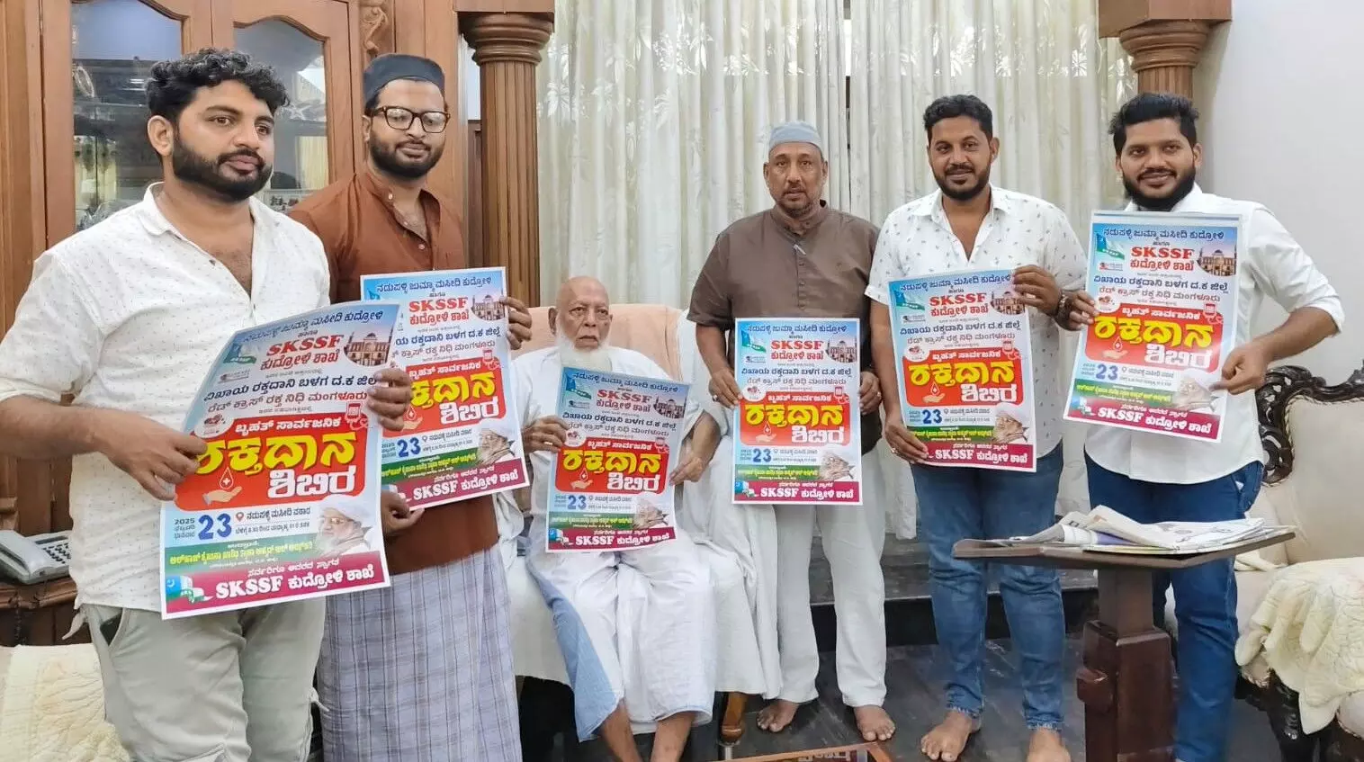 ಮಂಗಳೂರು: ನಡುಪಳ್ಳಿ ಜುಮ್ಮಾ ಮಸೀದಿ ಕುದ್ರೋಳಿ ಹಾಗೂ SKSSF ಕುದ್ರೋಳಿ ಶಾಖೆಯ ಜಂಟಿ ಆಶ್ರಯದಲ್ಲಿ ನಡೆಯುವ ಬೃಹತ್ ರಕ್ತದಾನ ಶಿಬಿರ ಕಾರ್ಯಕ್ರಮದ ಪೋಸ್ಟರ್ ಹಾಜಿ ಕೆ ಎಸ್ ಮೊಹಮ್ಮದ್ ಮಸೂದ್ (EX MLC ಹಾಗೂ ಅಧ್ಯಕ್ಷರು ಮುಸ್ಲಿಂ ಸೆಂಟ್ರಲ್ ಕಮಿಟಿ ದ. ಕ & ಉಡುಪಿ ಜಿಲ್ಲೆ ) ರವರ ನಿವಾಸದಲ್ಲಿ ಬಿಡುಗಡೆ ಮಾಡಲಾಯಿತು.