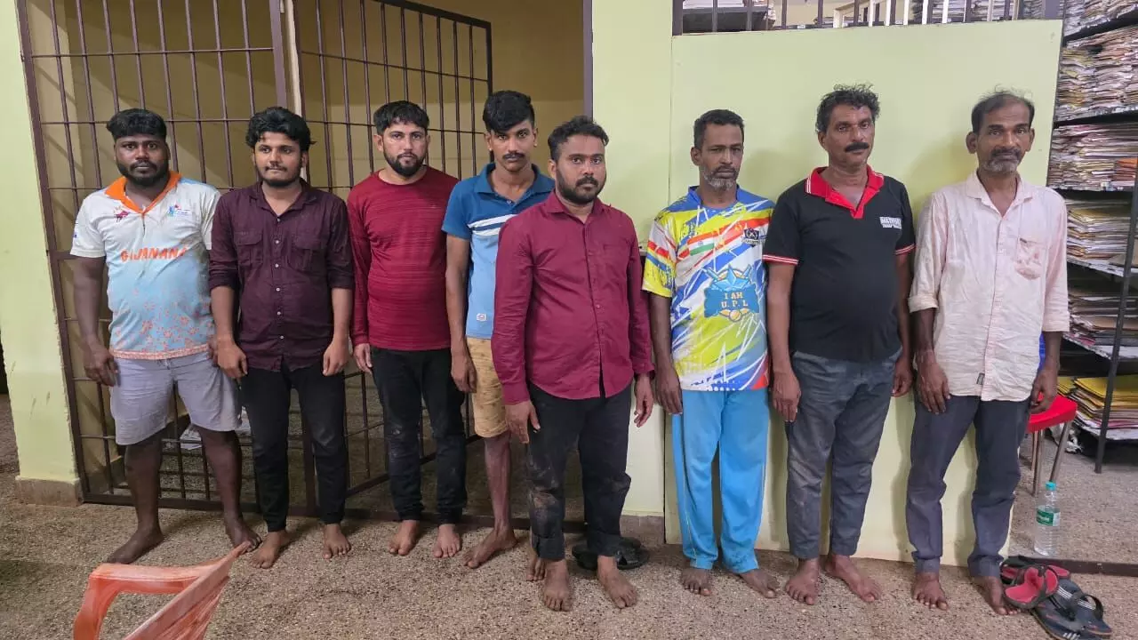 ಅಕ್ಬರ್, ಸಂತೋಷ್, ಪ್ರಶಾಂತ್, ಮಹಾಬಲ ಪೂಜಾರಿ, ಪ್ರಜ್ವಲ್, ಗಿರೀಶ್, ರಾಜೇಶ್ ಬಂಧಿತರು. ಗಣೇಶ್, ಶ್ರೀನಾಥ್, ದಿನೇಶ್ ಕೆಂಪುಗುಡ್ಡೆ, ಕೇಶವ ಯಾನೆ ಅಪ್ಪು ಹಾಗೂ ಇನ್ನಿತರರು ಓಡಿ ಹೋಗಿದ್ದಾರೆ ಎಂದು ಪೊಲೀಸರು ತಿಳಿಸಿದ್ದಾರೆ.