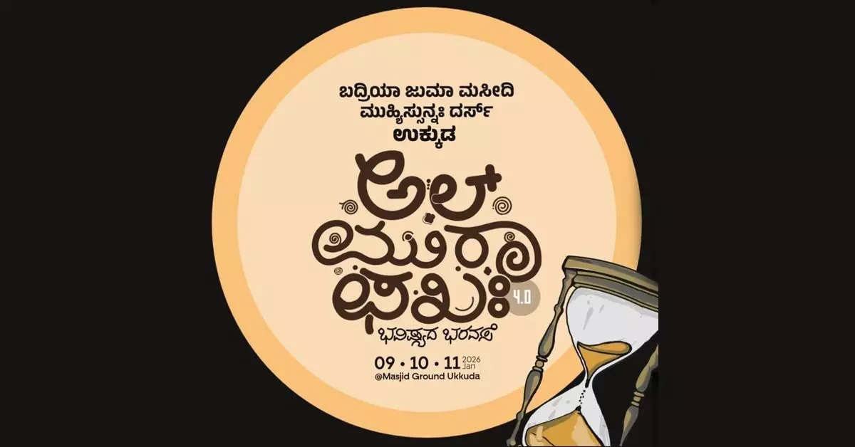 ಉಕ್ಕುಡ: ಬದ್ರಿಯಾ ಜುಮಾ ಮಸೀದಿ ಉಕ್ಕುಡ ಇದರ ಆಶ್ರಯದಲ್ಲಿ ನಡೆಯುತ್ತಿರುವ ಮುಹ್ಯಿಸ್ಸುನ್ನ ದರ್ಸ್ ಇದರ ಮುತಅಲ್ಲಿಮರ ಕಲಾ–ಸಾಹಿತ್ಯ ಕಲರವ ಅಲ್-ಮುರಾಫಖಃ 2K26 ಹಾಗೂ ಸದರಿ ಮಸೀದಿ ಮುದರ್ರಿಸ್ ಹಾಫಿಳ್ ಅಹ್ಮದ್ ಶರೀಫ್ ಕಾಮಿಲ್ ಸಖಾಫಿ ಅಲ್-ಹಿಕಮಿ ಅಲ್-ಅರ್ಷದಿ ಮಳಲಿ ಉಸ್ತಾದರ ದರ್ಸಿನ 15ನೇ ವಾರ್ಷಿಕೋತ್ಸವದ ಉದ್ಘಾಟನಾ ಸಮಾರಂಭ ನಡೆಯಲಿದೆ.