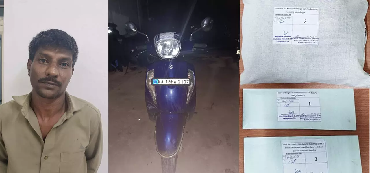 ಮಂಗಳೂರು ನಗರದ ಕಂಕನಾಡಿ- ಪಂಪ್ ವೆಲ್ ಪರಿಸರದಲ್ಲಿ ದ್ವಿಚಕ್ರ ವಾಹನದಲ್ಲಿ ಮಾದಕ ವಸ್ತು ಗಾಂಜಾವನ್ನು ಸಾರ್ವಜನಿಕರಿಗೆ ಮಾರಾಟ ಮಾಡುತ್ತಿರುವ ಬಗ್ಗೆ ಖಚಿತ ಮಾಹಿತಿ ಪಡೆದ ಮಂಗಳೂರು ಸಿಸಿಬಿ ಪೊಲೀಸರು ದಾಳಿ ನಡೆಸಿ ನಿಷೇದಿತ ಮಾದಕ ವಸ್ತುವನ್ನು ಹೊಂದಿದ ಕೋಡಿಕಲ್ ನ ಮೊಹಮ್ಮದ್ ಅಝೀಝ್ (40) ಎಂಬಾತನನ್ನು ವಶಕ್ಕೆ ಪಡೆದು ಆತನಿಂದ 2 ಕೆ ಜಿ ತೂಕದ ಆಂದಾಜು ರೂ. 50,000/- ಮೌಲ್ಯದ ಗಾಂಜಾ, ಸುಝುಕಿ ಅಕ್ಸಸ್ ದ್ವಿಚಕ್ರ ವಾಹನ ಹಾಗೂ ಮೊಬೈಲ್ ಫೋನ್ ನ್ನು ವಶಪಡಿಸಿಕೊಳ್ಳಲಾಗಿದೆ.