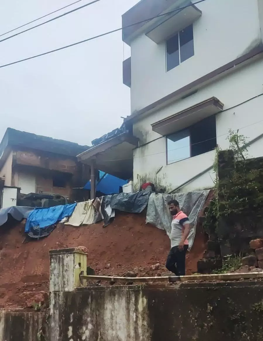 ಉಳ್ಳಾಲ: ಕಳೆದೆರಡು ದಿನಗಳಿಂದ ಸುರಿದ ಮಳೆಗೆ ಉಳ್ಳಾಲ ನಗರ ಸಭೆ ವ್ಯಾಪ್ತಿಯ ಹಳೆ ಕೋಟೆ ಎಂಬಲ್ಲಿ ಮನೆಯ ಅವರಣ ಗೋಡೆ ಮೇಲೆ ಮಣ್ಣು ಕುಸಿದು ಬಿದ್ದಿದೆ. ಇದರಿಂದ ಎರಡು ಮನೆಗಳು ಅಪಾಯದಲ್ಲಿದ್ದು, ಗುಡ್ಡ ಕುಸಿಯುವ ಭೀತಿ ಎದುರಾಗಿದೆ. ಮುಂಜಾಗ್ರತಾ ಕ್ರಮವಾಗಿ ಮೂರು ಕುಟುಂಬಗಳನ್ನು ಸ್ಥಳಾಂತರಿಸಲಾಗಿದ್ದು, ಅವರು ಸಂಬಂಧಿಕರ ಮನೆಗೆ ತೆರಳಿದ್ದಾರೆ.