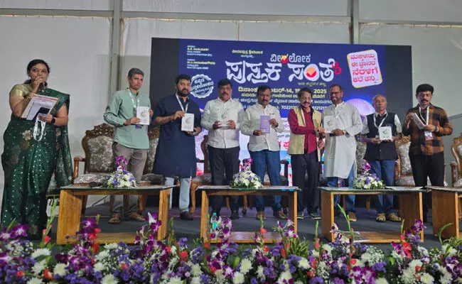 ಬೆಂಗಳೂರು, ನ.14: ವೀರಲೋಕ ಪ್ರಕಾಶನವು ಬೆಂಗಳೂರಿನ ಶಾಲಿನಿ ಮೈದಾನದಲ್ಲಿ ನ.14ರಿಂದ 16ರವೆರೆಗೆ ಆಯೋಜಿಸಿರುವ ಪುಸ್ತಕ ಸಂತೆಯಲ್ಲಿ ಪತ್ರಕರ್ತ ಹಂಝ ಮಲಾರ್ ಬರೆದ "ಅರ್ಧ ಹಿಂದೂ- ಅರ್ಧ ಮುಸ್ಲಿಂ" ಕಥಾಸಂಕಲನವು ಶುಕ್ರವಾರ ಬಿಡುಗಡೆಗೊಂಡಿತು.