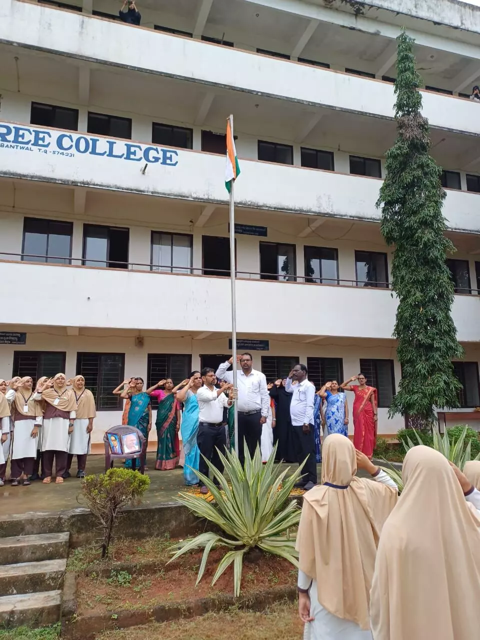 ಕಾಲೇಜಿನ ಪ್ರಾಂಶುಪಾಲ ಫಯಾಝ್ ದೊಡ್ಡಮನೆ ಧ್ವಜಾರೋಹಣಗೈದರು. ಬಳಿಕ ನಡೆದ ಸಭಾ ಕಾರ್ಯಕ್ರಮ ದಲ್ಲಿ ಮಾತನಾಡಿ, ದೇಶಕ್ಕೆ ಸ್ವಾತಂತ್ರ್ಯ ಸಿಕ್ಕಿ ಇಷ್ಟು ವರ್ಷ ಸಂದರೂ ಇನ್ನೂ ಸರ್ವರಿಗೂ ಸಮಪಾಲು- ಸಮಬಾಳು ದಕ್ಕಿಲ್ಲ, ದೇಶದಲ್ಲಿ ನಿರುದ್ಯೋಗ -ಬಡತನ ಮೂಲಭೂತ ಸೌಕರ್ಯಗಳ ಕೊರತೆ ಇನ್ನೂ ಅನೇಕ ಸಮಸ್ಯೆಗಳು ದೇಶವನ್ನು ಕಾಡುತ್ತಿದ್ದು ದೇಶವನ್ನು ಪ್ರಗತಿಪಥದತ್ತ ಕೊಂಡೊಯ್ಯಲು ಸರ್ವರೂ ಪ್ರಯತ್ನಿಸಬೇಕಾದ ಅಗತ್ಯವಿದೆ ಎಂದು ಹೇಳಿದರು.