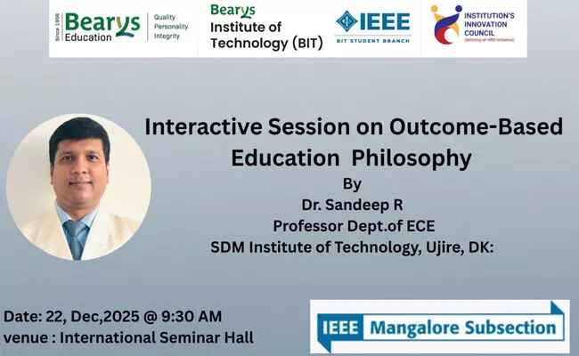 ಮಂಗಳೂರು, ಡಿ. 24: ಬ್ಯಾರೀಸ್ ಇನ್ಸ್ಟಿಟ್ಯೂಟ್ ಆಫ್ ಟೆಕ್ನಾಲಜಿ (BIT), ಮಂಗಳೂರು, IEEE BIT ವಿದ್ಯಾರ್ಥಿ ವಿಭಾಗದ ಜಂಟಿ ಆಶ್ರಯದಲ್ಲಿ ಫಲಿತಾಂಶ ಆಧಾರಿತ ಶಿಕ್ಷಣ - Outcome Based Education (OBE) ತತ್ವಶಾಸ್ತ್ರದ ಕುರಿತು ಸಂವಾದ ಕಾರ್ಯಕ್ರಮವನ್ನು ಸೋಮವಾರ ಆಯೋಜಿಸಲಾಯಿತು.