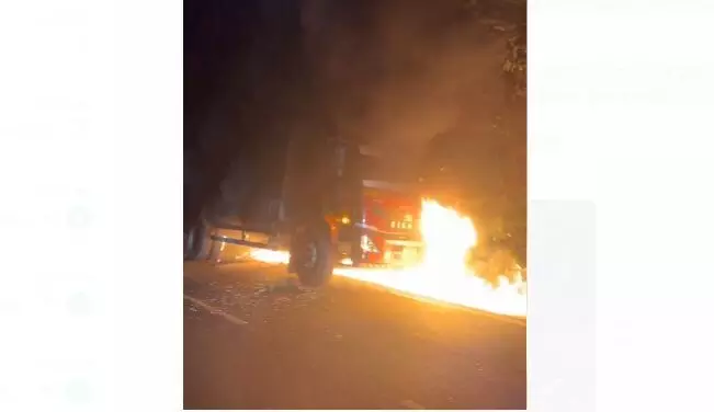 ಜೋಡುಪಾಲ| ಭತ್ತ ಸಾಗಾಟದ ಲಾರಿ ಬೆಂಕಿಗಾಹುತಿ