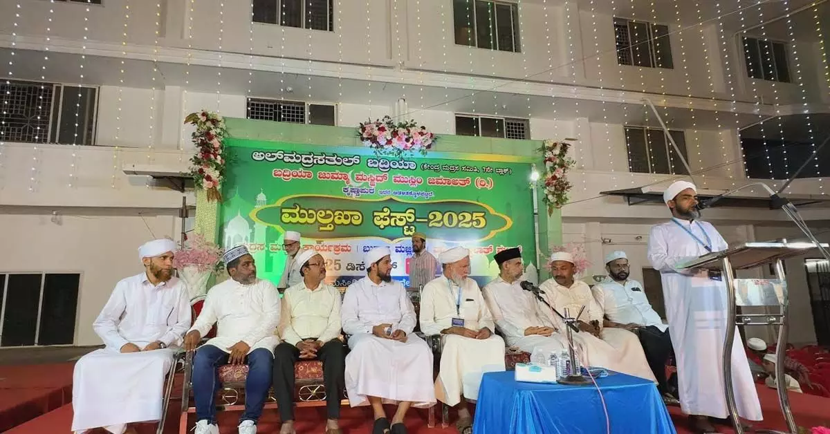 ಸುರತ್ಕಲ್ : ಬದ್ರಿಯಾ ಜುಮ್ಮಾ ಮಸ್ಟಿದ್ ಮುಸ್ಲಿಂ ಜಮಾಅತ್ (ರಿ) ಕೃಷ್ಣಾಪುರ ಇದರ ಆಡಳಿತಕ್ಕೊಳಪಟ್ಟಿರುವ ಅಲ್ಮದ್ರಸತುಲ್ ಬದ್ರಿಯಾದ "ಮುಕ್ತಖಾ ಫೆಸ್ಟ್-2025" ಪ್ರಯುಕ್ತ ಮದ್ರಸ ಮಕ್ಕಳ ಕಾರ್ಯಕ್ರಮ, ಬುರ್ದಾ ಮಜ್ಜಿಸ್, ವಾರ್ಷಿಕ ಸ್ವಲಾತ್ ಮಜ್ಜಿಸ್ ಹಾಗೂ ಮತ ಪ್ರಭಾಷಣದ ಸಮಾರೋಪ ಸಮಾರಂಭವು ಗುರುವಾರ ಮಸೀದಿಯ ವಠಾರದಲ್ಲಿ ಜರುಗಿತು.