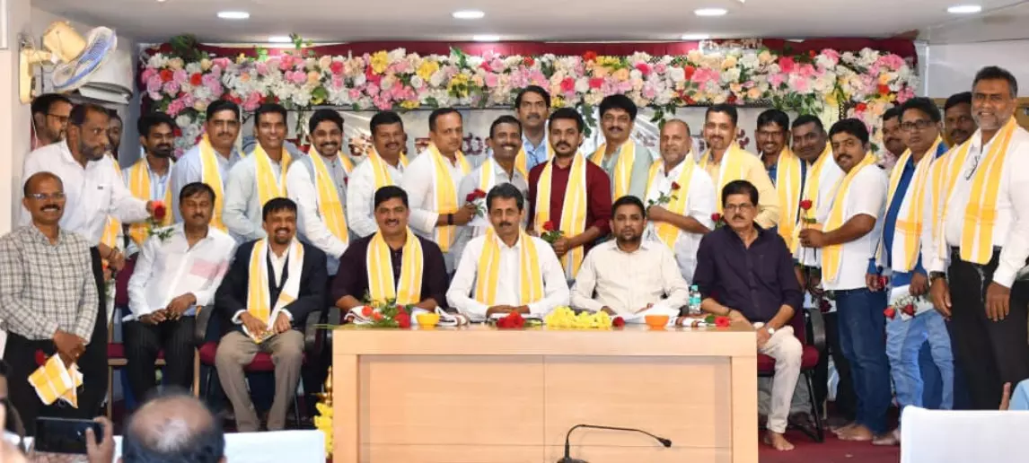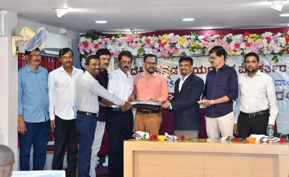 ಮಂಗಳೂರು, ನ. 21: ದ.ಕ. ಜಿಲ್ಲಾ ಕಾರ್ಯನಿರತ ಪತ್ರಕರ್ತರ ಸಂಘದ 2025-2028ನೆ ಸಾಲಿನ ನೂತನ ಸಮಿತಿಯ ಪದ್ರಹಣ ಸಮಾರಂಭ ಪ್ರೆಸ್ಕ್ಲಬ್ನಲ್ಲಿ ಶುಕ್ರವಾರ ನಡೆಯಿತು. ನೂತನ ಅಧ್ಯಕ್ಷರಾಗಿ ವಾರ್ತಾಭಾರತಿ ಪತ್ರಿಕೆಯ ಮಂಗಳೂರು ಸ್ಥಾನೀಯ ಮುಖ್ಯಸ್ಥ ಪುಷ್ಪರಾಜ್ ಬಿ.ಎನ್. ಹಾಗೂ ಪ್ರಧಾನ ಕಾರ್ಯದರ್ಶಿಯಾಗಿ ರಾಜೇಶ್ ಕೆ. ಪೂಜಾರಿ, ರಾಜ್ಯ ಕಾರ್ಯಕಾರಿ ಸಮಿತಿ ಸದಸ್ಯರಾಗಿ ಶ್ರೀನಿವಾಸ್ ನಾಯಕ್ ಇಂದಾಜೆ ಸಹಿತ ಜಿಲ್ಲಾ ಸಂಘದ ಇತರ ಪದಾಧಿಕಾರಿಗಳು ಹಾಗೂ ಕಾರ್ಯಕಾರಿ ಸಮಿತಿ ಸದಸ್ಯರು ಅಧಿಕಾರ ಸ್ವೀಕರಿಸಿದರು.