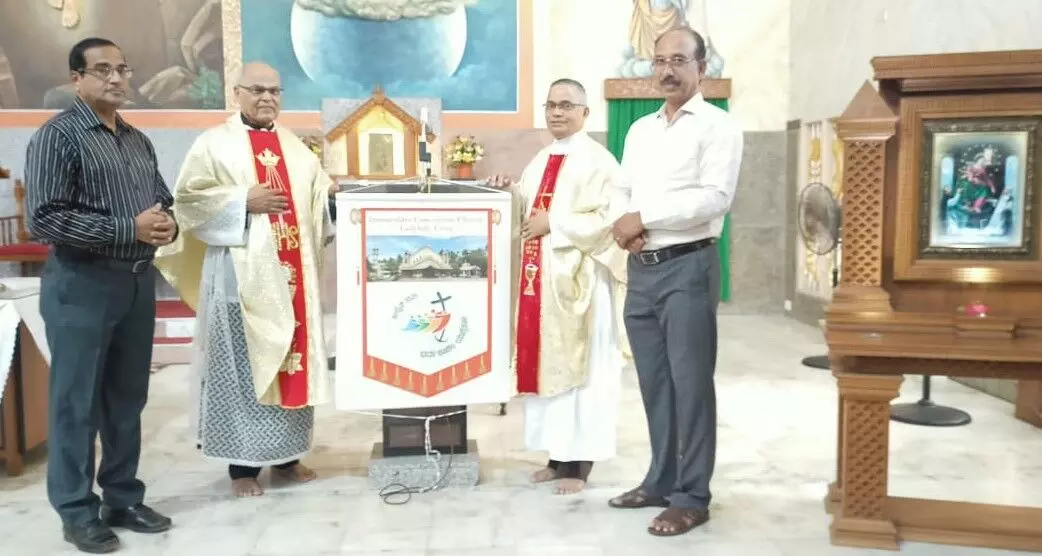 ಮಂಗಳೂರು : ನಗರದ ಉರ್ವ ಲೇಡಿಹಿಲ್ ಚರ್ಚ್ನಲ್ಲಿ ರವಿವಾರ ಪ್ರಧಾನ ಧರ್ಮಗುರು ಫಾ. ಬೆಂಜಮಿನ್ ಪಿಂಟೋ ಅವರು ಕ್ರಿಸ್ತ ಜಯಂತಿ ಜುಬಿಲಿ 2025ರ ಲೋಗೋ ಅನಾವರಣಗೊಳಿಸಿದರು. ಈ ಸಂದರ್ಭದಲ್ಲಿ ಚರ್ಚ್ನ ಪಾಲನಾ ಸಮಿತಿಯವರು ಉಪಸ್ಥಿತರಿದ್ದರು.