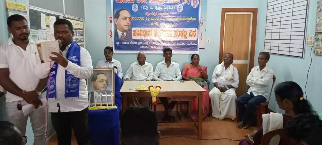 ಮಂಗಳೂರು, ಡಿ.6: ಕರ್ನಾಟಕ ದಲಿತ ಸಂಘರ್ಷ ಸಮಿತಿ (ರಿ ) ಪ್ರೊ. ಬಿ. ಕೃಷ್ಣಪ್ಪ ಸ್ಥಾಪಿತ. ದ. ಕ. ಜಿಲ್ಲಾ ಸಮಿತಿ ವತಿಯಿಂದ ಸಂವಿಧಾನ ಶಿಲ್ಪಿ, ಭಾರತರತ್ನ ಡಾ.ಬಿ. ಆರ್. ಅಂಬೇಡ್ಕರ್ 67ನೇ ಪರಿನಿಬ್ಬಾಣ ದಿನವನ್ನು ಸಂವಿಧಾನ ಸಂರಕ್ಷಣಾ ಸಂಕಲ್ಪ ದಿನವನ್ನಾಗಿ ಮಂಗಳೂರಿನ ಡಿ. ಗ್ರೂಪ್ ನೌಕರರ ಭವನದಲ್ಲಿ ಆಚರಿಸಲಾಯಿತು.