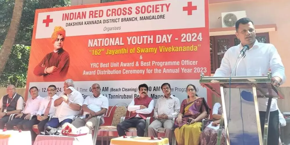 ಭಾರತೀಯ ರೆಡ್ಕ್ರಾಸ್ ಸಂಸ್ಥೆ ದ.ಕ.ಜಿಲ್ಲೆ ಇದರ ವತಿಯಿಂದ ಸ್ವಾಮಿ ವಿವೇಕಾನಂದರ 162ನೇ ಜಯಂತಿ ಅಂಗವಾಗಿ ಶುಕ್ರವಾರ ತಣ್ಣೀರುಬಾವಿ ಬೀಚ್ನ ಟ್ರೀ ಪಾರ್ಕ್ನಲ್ಲಿ ನಡೆದ ರಾಷ್ಟ್ರೀಯ ಯುವ ದಿನಾಚರಣೆ ಕಾರ್ಯಕ್ರಮದಲ್ಲಿ ಮುಖ್ಯ ಅತಿಥಿಯಾಗಿ ಮಾತನಾಡಿದ ಅವರು ಭವ್ಯ ಭಾರತದ ನಿರ್ಮಾಣಕ್ಕೆ ಸ್ವಾಮಿ ವಿವೇಕಾನಂದರ ತತ್ವಾದರ್ಶಗಳು ಪ್ರೇರಣೆಯಾಗಿದೆ ಎಂದರು.