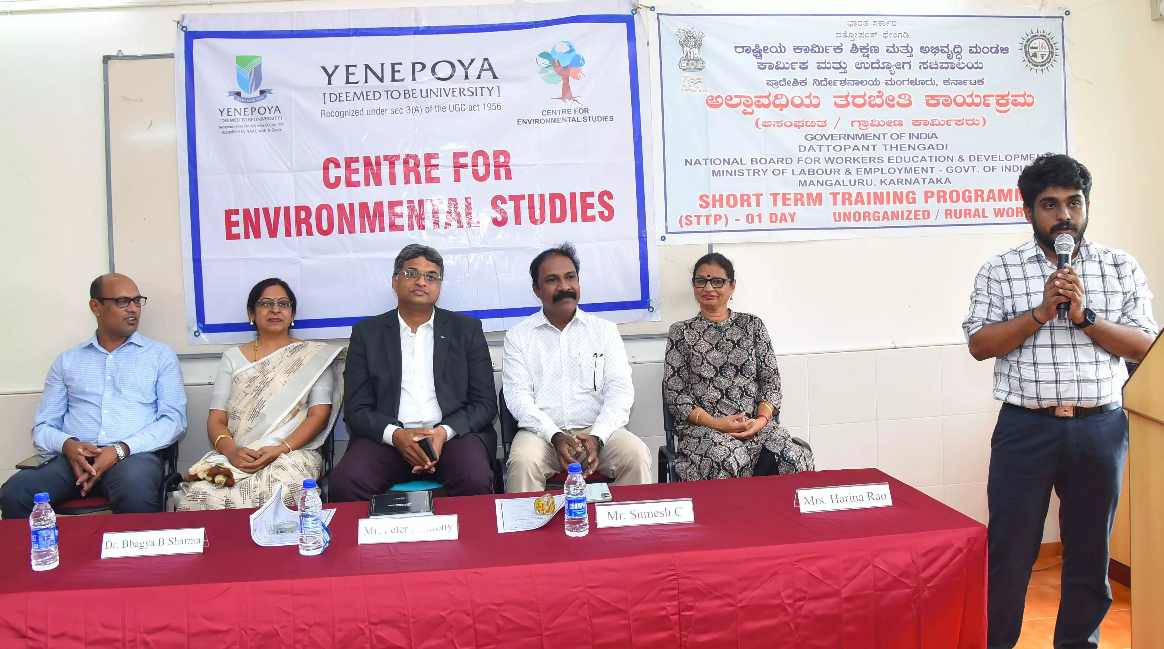 ಮಂಗಳೂರು: ಯೆನೆಪೊಯ ವಿಶ್ವವಿದ್ಯಾನಿಲಯವು ದತ್ತೋಪಂತ್ ಥೇಂಗಡಿ ರಾಷ್ಟ್ರೀಯ ಕಾರ್ಮಿಕರ ಶಿಕ್ಷಣ ಮತ್ತು ಅಭಿವೃದ್ಧಿ ಮಂಡಳಿ, ಭಾರತ ಸರಕಾರದ ಕಾರ್ಮಿಕ ಮತ್ತು ಉದ್ಯೋಗ ಸಚಿವಾಲಯ, ಸಹಯೋಗದೊಂದಿಗೆ ವಿಶ್ವವಿದ್ಯಾನಿಲಯದ ಸಿಬ್ಬಂದಿಗೆ ಸ್ವಯಂ ಉದ್ಯೋಗದ ಕುರಿತು ಒಂದು ದಿನದ ತರಬೇತಿ ಕಾರ್ಯಕ್ರಮವನ್ನು ಗುರುವಾರ ಯೆನೆಪೊಯ ವಿವಿಯಲ್ಲಿ ನಡೆಯಿತು.