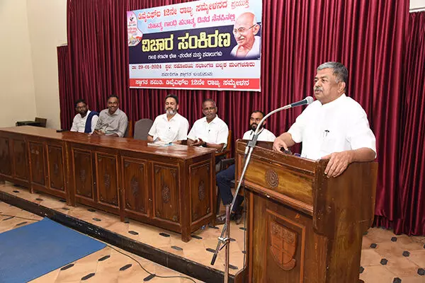 ನಗರದ ಬಲ್ಮಠದ ಸಹೋದಯ ಸಭಾಂಗಣದಲ್ಲಿ ಸೋಮವಾರ ಮಹಾತ್ಮ ಗಾಂಧಿ ಹುತಾತ್ಮ ದಿನದ ನೆನಪಿನಲ್ಲಿ ಡಿವೈಎಫ್ಐ 12 ನೇ ರಾಜ್ಯ ಸಮ್ಮೇಳನ ಸ್ವಾಗತ ಸಮಿತಿಯ ವತಿಯಿಂದ ನಡೆದ "ಗಾಂಧಿ ಕರಾವಳಿ ಭೇಟಿ - ಸಂದೇಶ, ಸವಾಲುಗಳು" ಎಂಬ ವಿಷಯದ ಮೇಲೆ ವಿಚಾರ ಸಂಕಿರಣವನ್ನು ಉದ್ಘಾಟಿಸಿ ಮಾತನಾಡಿದರು.