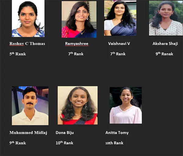 ಮ್ಯಾನೇಜ್ಮೆಂಟ್ ಅಫ್ ನರ್ಸಿಂಗ್ ಸರ್ವಿಸಸ್ ಆ್ಯಂಡ್ ಎಜುಕೇಶನ್ ವಿಭಾಗದಲ್ಲಿ ರೋಶ್ನಿ ಸಿ. ಥೋಮಸ್ 5ನೇ ರ್ಯಾಂಕ್ , ಸೈಕೋಲಾಜಿ ವಿಭಾಗದಲ್ಲಿ ರಮ್ಯಶ್ರೀ ಮತ್ತು ವೈಶ್ಣವಿ ವಿ, 7ನೇ ರ್ಯಾಂಕ್ ಮೆಡಿಕಲ್ ಸರ್ಜಿಕಲ್ ನರ್ಸಿಂಗ್-2 ವಿಭಾಗದಲ್ಲಿ ಅಕ್ಷರ ಶಾಜಿ 9ನೇ ರ್ಯಾಂಕ್, ಸೋಸಿಯೋಲಜಿ ವಿಭಾಗದಲ್ಲಿ ಮುಹಮ್ಮದ್ ಮಿದ್ಲಾಜ್ 9ನೇ ರ್ಯಾಂಕ್, ನ್ಯೂಟ್ರಿಶನ್ ಆ್ಯಂಡ್ ಬೈಯೋಕೆಮೆಸ್ಟ್ರಿ ವಿಭಾಗದಲ್ಲಿ ಡೋನ ಬಿಜು 10ನೇ ರ್ಯಾಂಕ್ ಹಾಗೂ ನರ್ಸಿಂಗ್ ರಿಸೆರ್ಚ್ ಆ್ಯಂಡ್ ಸ್ಟಾಟಿಸ್ಟಿಕ್ಸ್ ವಿಭಾಗದಲ್ಲಿ ಅನಿಟ್ಟ ಟೋಮಿ 10ನೇ ರ್ಯಾಂಕ್ ಪಡೆದುಕೊಂಡಿರುವುದಾಗಿ ಪ್ರಕಟನೆ ತಿಳಿಸಿದೆ.