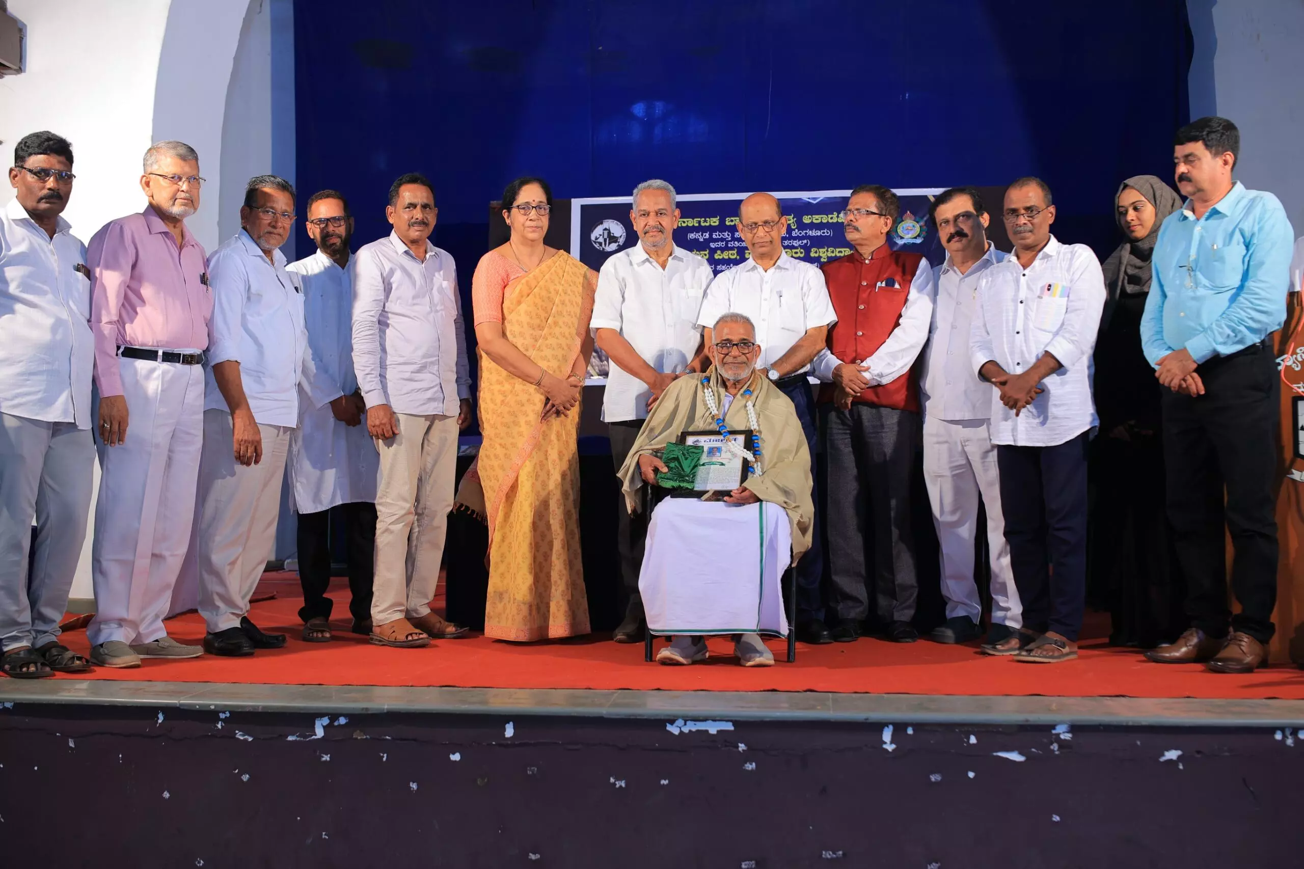 ಮಂಗಳೂರು, ಮಾ.9: ಹಿರಿಯ ಸಾಹಿತಿ, ‘ಬ್ಯಾರಿ: ನಾನು ಕಂಡಂತೆ’ ಕೃತಿಯ ಲೇಖಕ ಹಾಜಿ ಟಿ.ಎ.ಆಲಿಯಬ್ಬ ಜೋಕಟ್ಟೆಯವರನ್ನು ನಗರದಲ್ಲಿ ಇತ್ತೀಚೆಗೆ ನಡೆದ ಕಾರ್ಯಕ್ರಮದಲ್ಲಿ ದೇರಳಕಟ್ಟೆಯ ‘ಮೇಲ್ತೆನೆ’ ಸಂಘಟನೆಯ ವತಿಯಿಂದ ಸನ್ಮಾನಿಸಲಾಯಿತು.