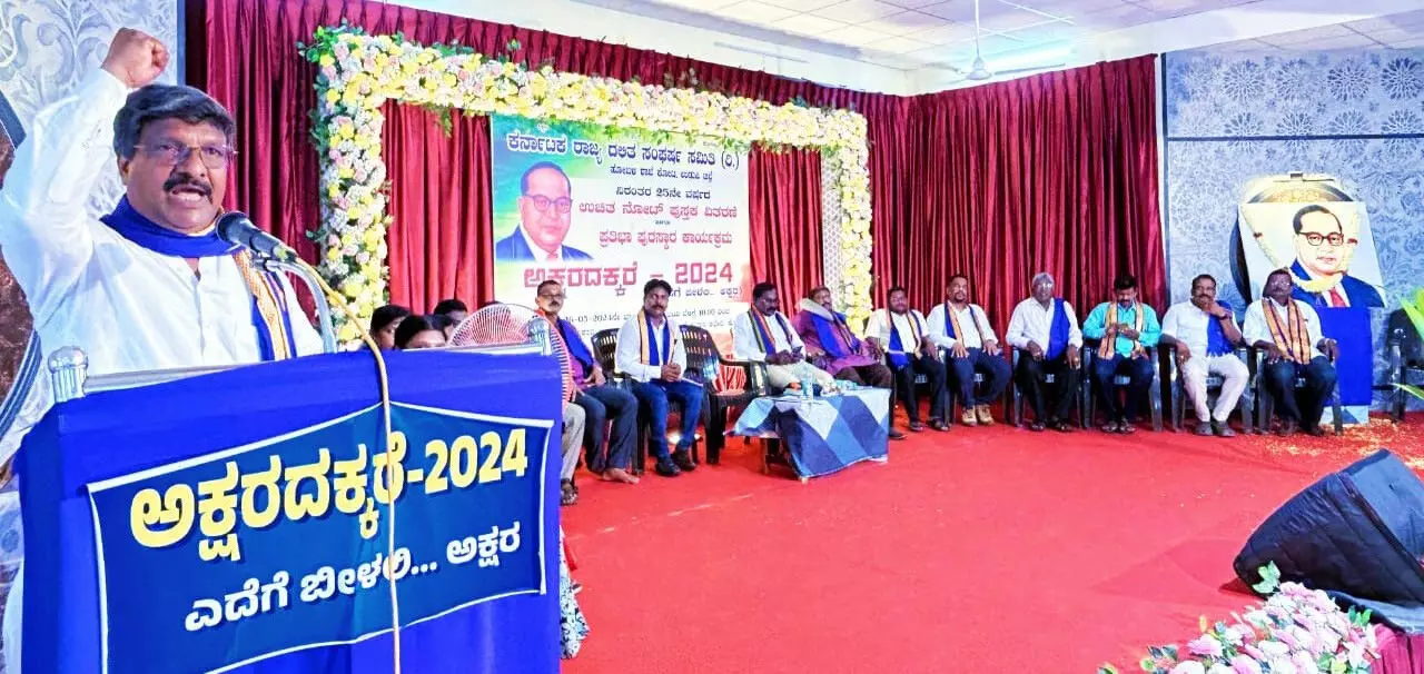 ಕರ್ನಾಟಕ ರಾಜ್ಯ ದಲಿತ ಸಂಘರ್ಷ ಸಮಿತಿಯ ಕೋಟ ಹೋಬಳಿ ಶಾಖೆ ವತಿಯಿಂದ ಕೋಟ ಸಿ.ಎ ಬ್ಯಾಂಕ್ ಪ್ರಧಾನ ಕಚೇರಿಯ ಬಿ.ಸಿ ಹೊಳ್ಳ ಸಹಕಾರ ಸಭಾಭವನದಲ್ಲಿ ರವಿವಾರ ಆಯೋಜಿಸಲಾದ ಉಚಿತ ನೋಟ್ ಪುಸ್ತಕ ವಿತರಣೆ ಹಾಗೂ ಪ್ರತಿಭಾ ಪುರಸ್ಕಾರ ‘ಅಕ್ಷರದಕ್ಕರೆ-2024’(ಎದೆಗೆ ಬೀಳಲಿ ...ಅಕ್ಷರ) ಕಾರ್ಯಕ್ರಮವನ್ನು ಉದ್ಘಾಟಿಸಿ ಅವರು ಮಾತನಾಡುತ್ತಿದ್ದರು.