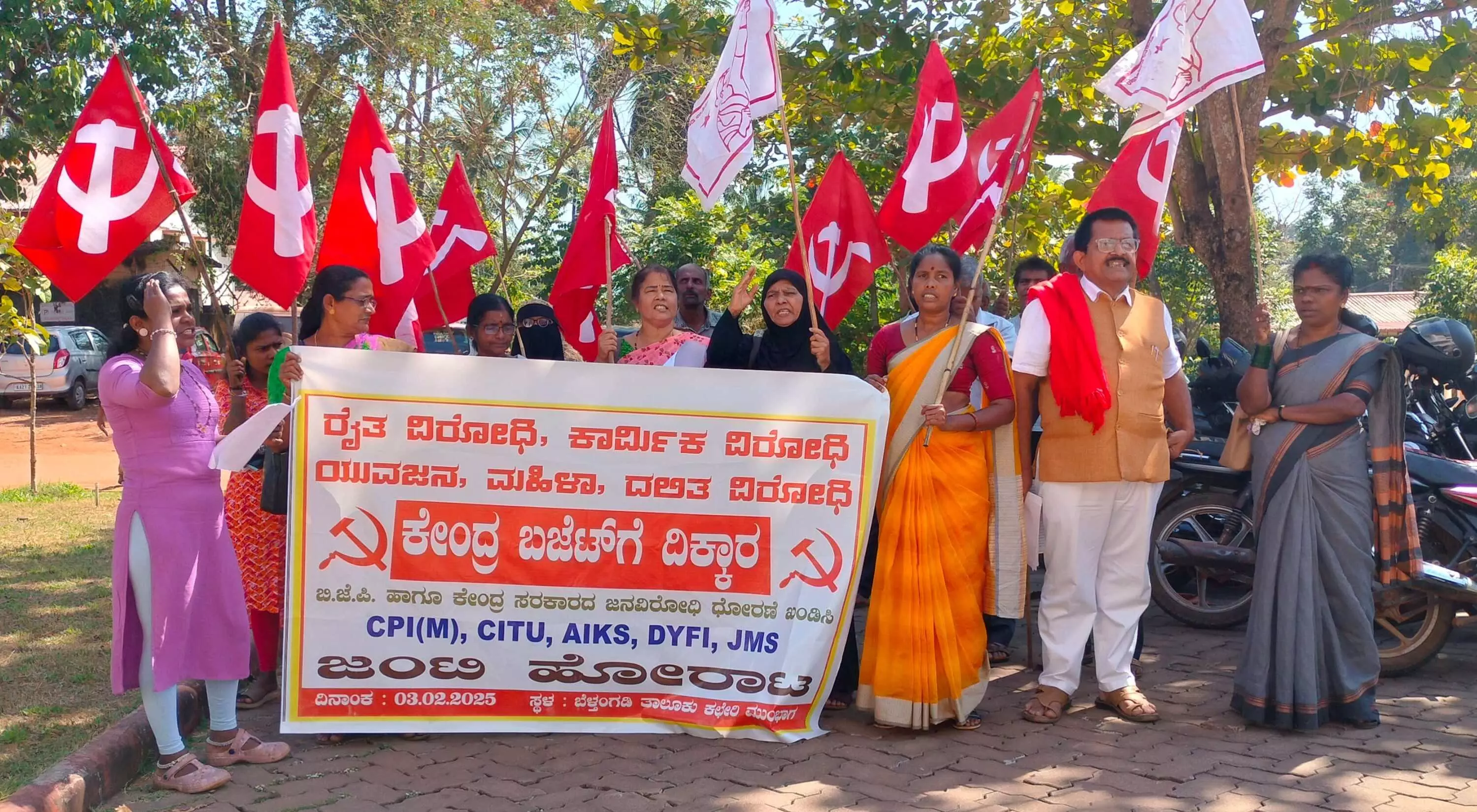 ಅವರು ಸೋಮವಾರ ಸಿಪಿಐಎಂ,ಸಿಐಟಿಯು, ಎಐಕೆಎಸ್,ಜೆ.ಎಂ.ಎಸ್ ಡಿ.ವೈ.ಎಫ್.ಐ. ಜಂಟಿಯಾಗಿ ಜನವಿರೋದಿ ಬಜೆಟ್ ವಿರುದ್ದ ನಡೆಸಿದ ಪ್ರತಿಭಟನೆಯನ್ನು ದ್ದೇಶಿಸಿ ಮಾತಾಡುತ್ತಿದ್ದರು. ರೈತರ ಈ ಸಂಕಷ್ಟದ ಸಮಯ ರೈತರ ಬೆಳೆಗಳಿಗೆ ಬೆಂಬಲ ಬೆಲೆ ನೀಡಲು ಸ್ವಾಮೀನಾಥನ್ ವರದಿ ಜಾರಿ ಮಾಡುವ ಪ್ರಸ್ತಾಪ ಇಲ್ಲದಿರುವುದು ಮಾತ್ರವಲ್ಲ ಹಣದುಬ್ಬರ ನಡುವೆ ರೈತರಿಗೆ ವಿಂಗಡಿಸಿದ ಅನುದಾದಲ್ಲಿ ಕಡಿತ, ರೈತರನ್ನು ಸಾಲದ ಬಾಧೆಯಿಂದ ಮುಕ್ತಿಗೊಳಿಸಲು ಪ್ರಸ್ತಾಪ ಮಾಡದ ಬಜೆಟ್ ಇದಾಗಿದೆ ಎಂದರು. ಮಹಿಳೆಯರು ದೇಶದಾದ್ಯಂತ ಮೈಕ್ರೋ ಫೈನಾನ್ಸ್ ಸಂಸ್ಥೆಗಳ ಸಾಲಕ್ಕೆ ಬಲಿಯಾಗಿ ದೌರ್ಜನ್ಯಕ್ಕೊಳಗಾಗಿರುವಾಗ ಅವರ ರಕ್ಷಣೆಗೆ ಯಾವುದೇ ಪ್ರಸ್ತಾಪ ಬಜೆಟಲ್ಲಿ ಇಲ್ಲದಿರುವುದು ವಿಷಾಧನೀಯ ಎಂದ ಅವರು ಜಿಲ್ಲೆಯ ಅಡಿಕೆ ಬೆಳೆಗಾರರ ರಕ್ಷಣೆಗೆ ಬಾರದ ಮೋದಿ ಸರಕಾರ ಕನಿಷ್ಟ ಅಡಿಕೆ ಆಮದು ನಿಷೇದಿಸುವ ಪ್ರಸ್ತಾಪವನ್ನಾಗಲಿ, ತೊಗರಿಬೇಳೆ ಆಮದು ನಿಷೇದಿಸುವ ಬಗ್ಗೆಯಾಗಲಿ ಮುಂದಾಗಲಿಲ್ಲ ಎಂದು ಟೀಕಿಸಿದರು.