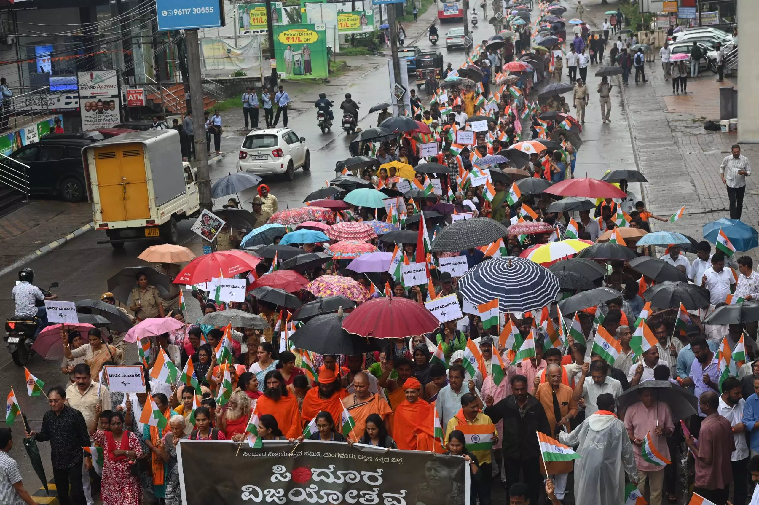 ಮಂಗಳೂರು: ಆಪರೇಷನ್ ಸಿಂಧೂರ ಯಶಸ್ವಿಯಾದ ಹಿನ್ನೆಲೆಯಲ್ಲಿ ಸಿಂಧೂರ ವಿಜಯೋತ್ಸವ ಸಮಿತಿ ಮಂಗಳೂರು ಇದರ ವತಿಯಿಂದ ಮಂಗಳವಾರ ನಗರದ ಪಿವಿಎಸ್ ವೃತ್ತದಿಂದ ಲಾಲ್ಬಾಗ್ವರೆಗೆ ಮೆರವಣಿಗೆ ನಡೆಯಿತು.