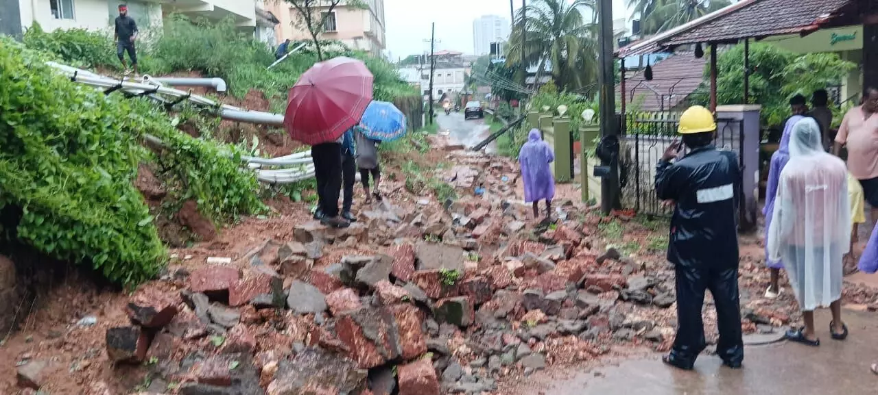 ಶನಿವಾರ ಸಂಜೆ ಸುರಿದ ಭಾರೀ ಮಳೆಯಿಂದಾಗಿ ಮಂಗಳೂರಿನ ಮರೋಳಿಯ ಸೂರ್ಯನಾರಾಯಣ ದೇವಾಲಯದ ಸಮೀಪದ ಯಮುನಾ ರೆಸಿಡೆನ್ಸಿ ವಸತಿ ಸಮುಚ್ಚಯದ ಕಾಂಪೌಂಡ್ ಗೋಡೆ ಕುಸಿದು ಲಕ್ಷಾಂತರ ರೂ. ನಷ್ಟ ಸಂಭವಿಸಿದೆ.