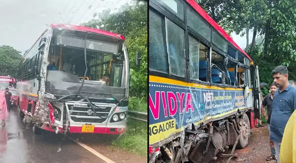 ಮಂಗಳೂರಿನಿಂದ ಮಡಿಕೇರಿಗೆ ತೆರಳುತ್ತಿದ್ದ ಹಾಗೂ ಮಡಿಕೇರಿಯಿಂದ ಬರುತ್ತಿದ್ದ ಕೆಎಸ್ಸಾರ್ಟಿಸಿ ಬಸ್ಗಳ ನಡುವೆ ಸುಳ್ಯ ತಾಲೂಕಿನ ಅರಂತೋಡು ಬಳಿಯ ತಿರುವಿನಲ್ಲಿ ಅಪಘಾತ ಸಂಭವಿಸಿದೆ.