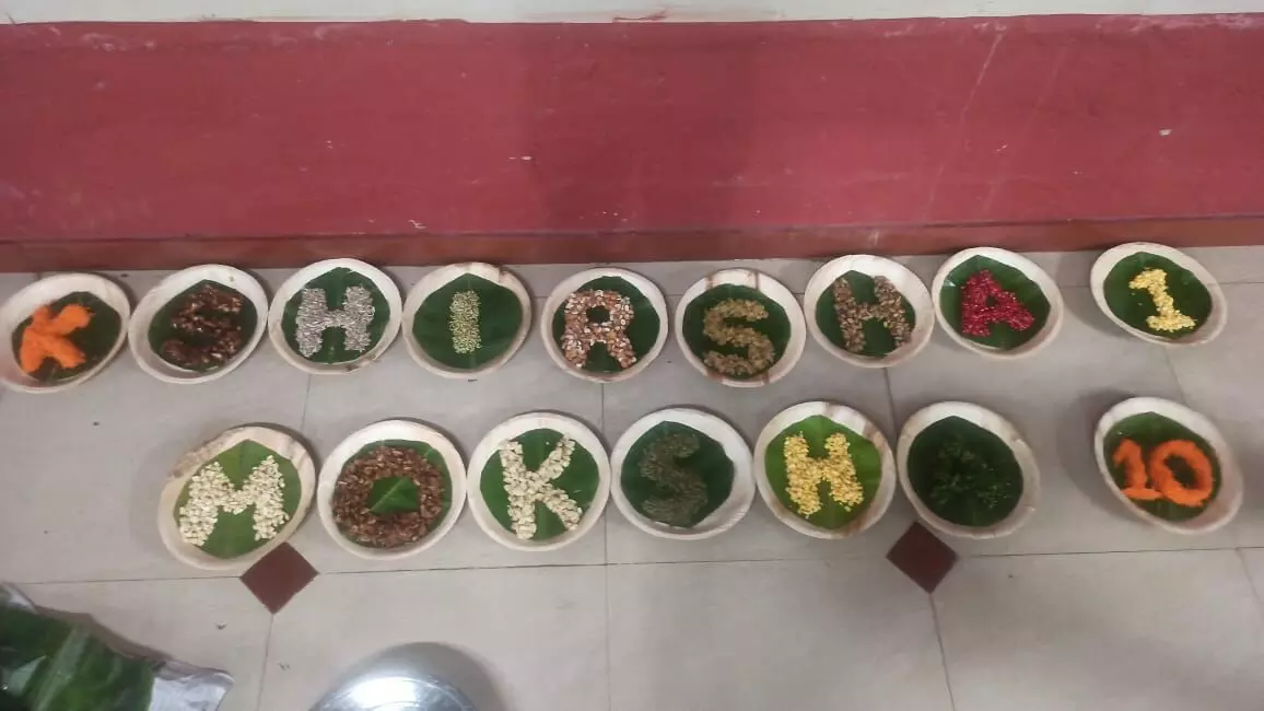 ಮೈದಾ, ಸಕ್ಕರೆಯಿಂದ ತಯಾರಿಸಿದ ಕೇಕ್ ಕಟ್ ಮಾಡುವ ಬದಲು ಅರೋಗ್ಯಭರಿತ ಹಣ್ಣು, ಒಣಹಣ್ಣು, ಒಣ ಬೀಜ, ಸೊಪ್ಪು ಹೀಗೆ ಅರೋಗ್ಯಭರಿತ 14 ಅಕ್ಷರಗಳನ್ನು ಹಾಳೆ ತಟ್ಟೆಯ ಮೇಲೆ ಬರೆದು 14 ಮಕ್ಕಳು ಒಬ್ಬೊಬ್ಬರಾಗಿ ಪಾತ್ರೆಗೆ ಹಾಕುವ (ಒಟ್ಟು ಮಾಡುವ) ಮೂಲಕ ಜನ್ಮ ದಿನದ ಆಚರಣೆ ಮಾಡಿದರು.