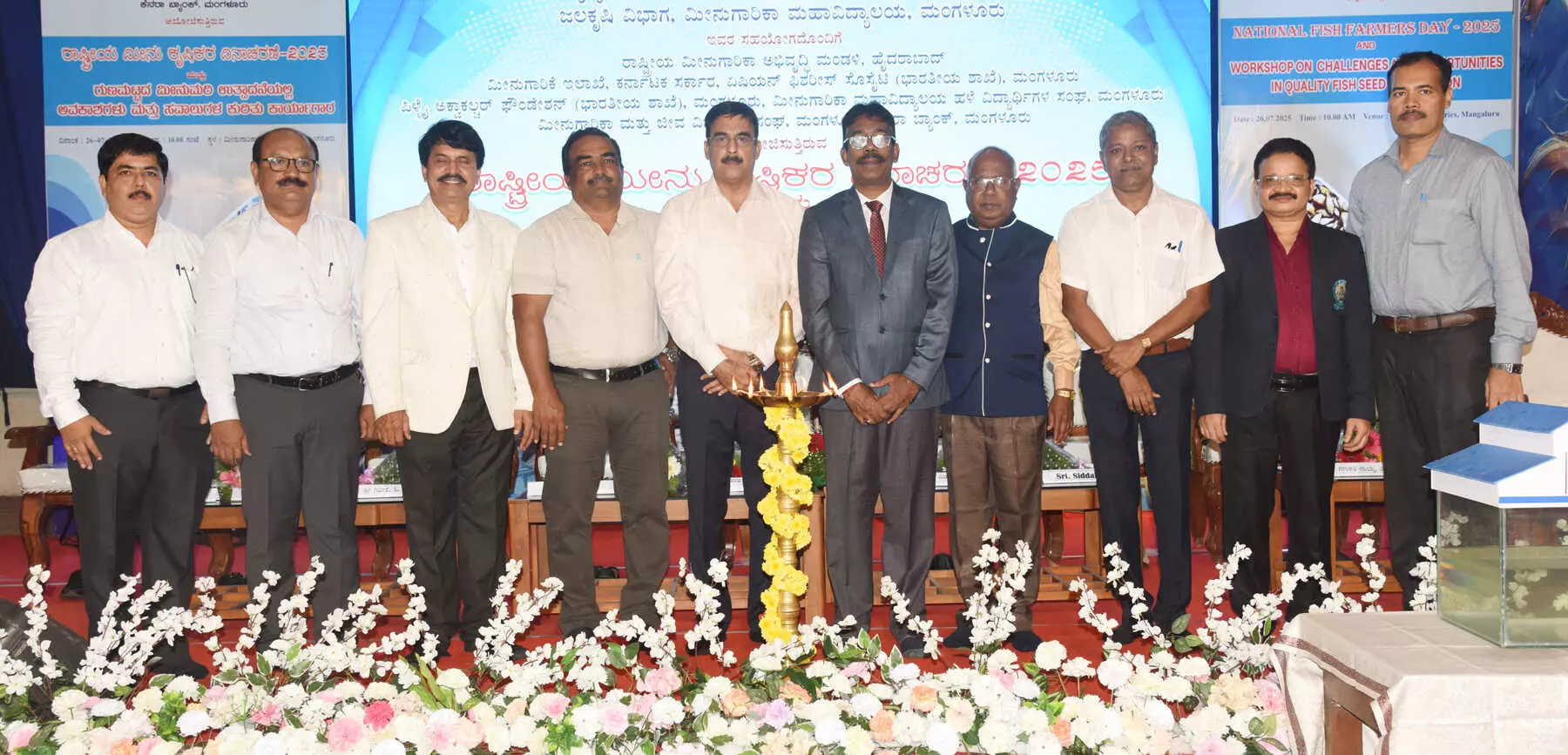 ಎಕ್ಕೂರಿನ ಮೀನುಗಾರಿಕಾ ಕಾಲೇಜಿನ ಸಭಾಂಗಣದಲ್ಲಿ ಶನಿವಾರ ಕರ್ನಾಟಕ ಪಶು ವೈದ್ಯಕೀಯ, ಪಶು, ಹಾಗೂ ಮೀನುಗಾರಿಕಾ ವಿಜ್ಞಾನಗಳ ವಿವಿ, ಮಂಗಳೂರು ಮೀನುಗಾರಿಕಾ ಕಾಲೇಜಿನ ಜಲ ಕೃಷಿ ವಿಭಾಗ, ರಾಷ್ಟ್ರೀಯ ಮೀನುಗಾರಿಕಾ ಅಭಿವೃದ್ಧಿ ಮಂಡಳಿ ಹಾಗೂ ವಿವಿಧ ಸಹ ಸಂಸ್ಥೆಗಳ ಸಹಯೋಗ ದಲ್ಲಿ ಆಯೋಜಿಸಲಾದ ಮೀನು ಕೃಷಿಕರ ದಿನಾಚರಣೆ ಮತ್ತು ಗುಣಮಟ್ಟದ ಮೀನುಮರಿ ಉತ್ಪಾದನೆಯಲ್ಲಿ ಸವಾಲು ಮತ್ತು ಅವಕಾಶಗಳ ಕುರಿತಂತೆ ಆಯೋಜಿಸಲಾದ ಕಾರ್ಯಾಗಾರವನ್ನು ಉದ್ಘಾಟಿಸಿ ಅವರು ಮಾತನಾಡಿದರು.