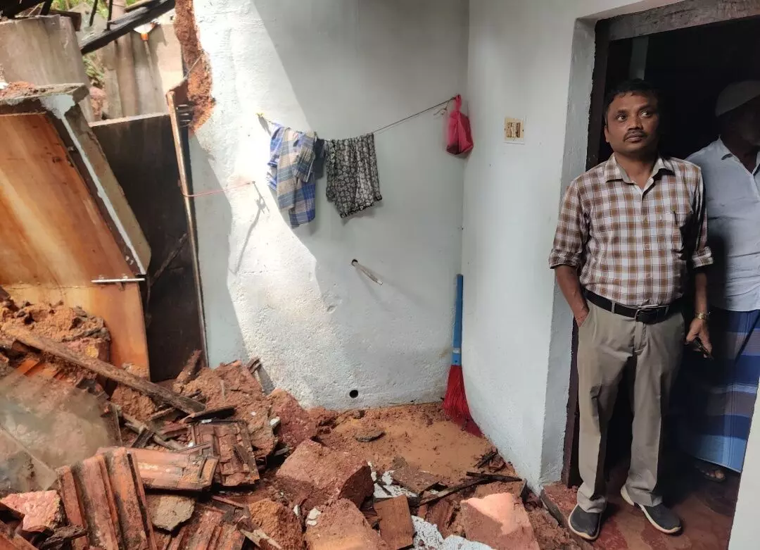 ಕೊಣಾಜೆ: ಪಜೀರ್ ಗ್ರಾಮ ಪಂಚಾಯತ್ ವ್ಯಾಪ್ತಿಯ ಬಳಕ ಎಂಬಲ್ಲಿ ನಿನ್ನೆ ರಾತ್ರಿ ಸುರಿದ ಧಾರಾಕಾರ ಮಳೆಗೆ ಇಸ್ಮಾಯೀಲ್ ಎಂಬವರ ಮನೆಗೆ ತಡೆಗೋಡೆ ಕುಸಿದು ಬಿದ್ದು ಮನೆ ಭಾಗಶಃ ಹಾನಿಗೀಡಾಗಿದೆ. ಘಟನೆ ವೇಳೆ ಮನೆಮಂದಿ ಮನೆಯಲ್ಲೇ ಇದ್ದಿದ್ದು, ಅದೃಷ್ಟವಶಾತ್ ಯಾವುದೇ ಅಪಾಯ ಸಂಭವಿಸಿಲ್ಲ.