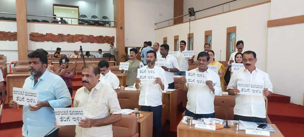 ►ಸದನದ ಬಾವಿಗಿಳಿದು ವಿಪಕ್ಷ ಸದಸ್ಯರ ಪ್ರತಿಭಟನೆ ►‘ಮೇಯರ್ರಿಂದ ಸದನಕ್ಕೆ ಅಗೌರವ’ ಆರೋಪ ►2 ಬಾರಿ ಸದನದಿಂದ ನಿರ್ಲಿಪ್ತವಾಗಿ ಹೊರನಡೆದ ಮೇಯರ್!