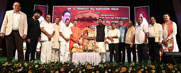 ಶಿವಮೊಗ್ಗದ ಕುವೆಂಪು ವಿವಿ ವತಿಯಿಂದ ಗೌರವ ಡಾಕ್ಟರೇಟ್ ಪದವಿ ಪುರಸ್ಕೃತರಾದ ಶ್ರೀದೇವಿ ಸಮೂಹ ಶಿಕ್ಷಣ ಸಂಸ್ಥೆ ಗಳ ಅಧ್ಯಕ್ಷ ಡಾ. ಎ. ಸದಾನಂದ ಶೆಟ್ಟಿ ಅವರಿಗೆ ‘ಡಾ.ಎ. ಸದಾನಂದ ಶೆಟ್ಟಿ ಅಭಿನಂದನಾ ಸಮಿತಿ’ಯ ವತಿಯಿಂದ ನಗರದ ಪುರಭವನದಲ್ಲಿ ಶನಿವಾರ ನಡೆದ ಸಾರ್ವಜನಿಕ ಸನ್ಮಾನ ಕಾರ್ಯಕ್ರಮದಲ್ಲಿ ಮುಖ್ಯ ಅತಿಥಿಯಾಗಿ ಭಾಗವಹಿಸಿ ಅವರು ಅಭಿನಂದನಾ ಭಾಷಣಗೈದರು.