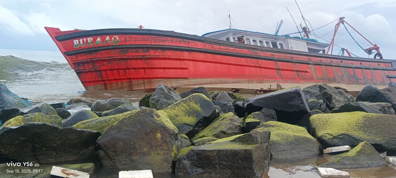 ಅಶ್ಫಾಕ್ ಎಂಬವರ ಮಾಲಕತ್ವದ 'ಬುರಾಖ್' ಹೆಸರಿನ ಮೀನುಗಾರಿಕಾ ಬೋಟ್ ದುರಂತಕ್ಕೀಡಾಗಿದೆ. ಈ ಸಂದರ್ಭ ಚಾಲಕ ಸಹಿತ ಬೋಟ್ನಲ್ಲಿದ್ದ ಹದಿಮೂರು ಮಂದಿ ಮೀನುಗಾರರು ಈಜಿ ದಡ ಸೇರಿದ್ದಾರೆ.