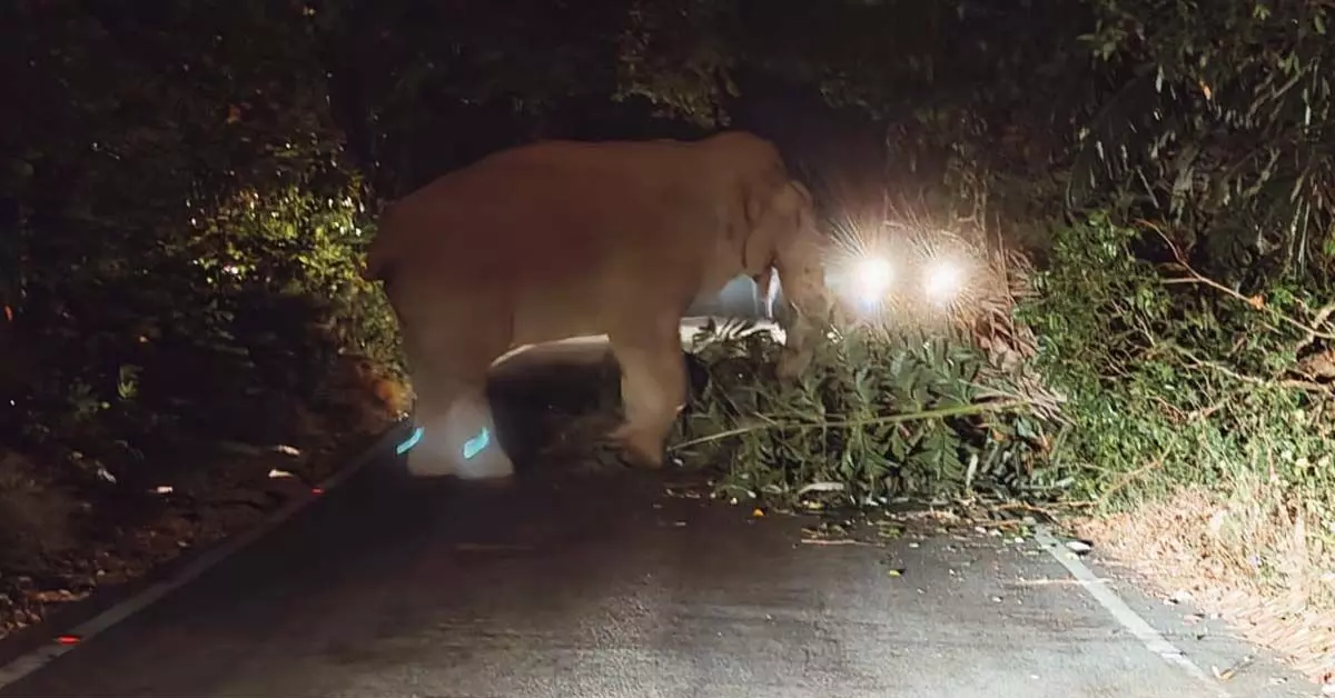 ರಾತ್ರಿ 9.45ರ ಸುಮಾರಿಗೆ ಕಾಡಾನೆ ಮರವನ್ನು ಮುರಿದು ರಸ್ತೆ ಮಧ್ಯೆ ನಿಂತು ತಿನ್ನುತ್ತಿದ್ದುದರಿಂದ ವಾಹನ ಸಂಚಾರ ಸಂಪೂರ್ಣವಾಗಿ ಅಸ್ತವ್ಯಸ್ತಗೊಂಡಿತ್ತು. ಈ ವೇಳೆ ವಾಹನ ಸವಾರರು ಕಾಡಾನೆಯನ್ನು ಅಟ್ಟಲು ಪ್ರಯತ್ನಿಸಿದರೂ ಅದು ಸ್ಥಳದಿಂದ ಕದಲದೇ ನಿಂತಿತ್ತು ಎನ್ನಲಾಗಿದೆ.